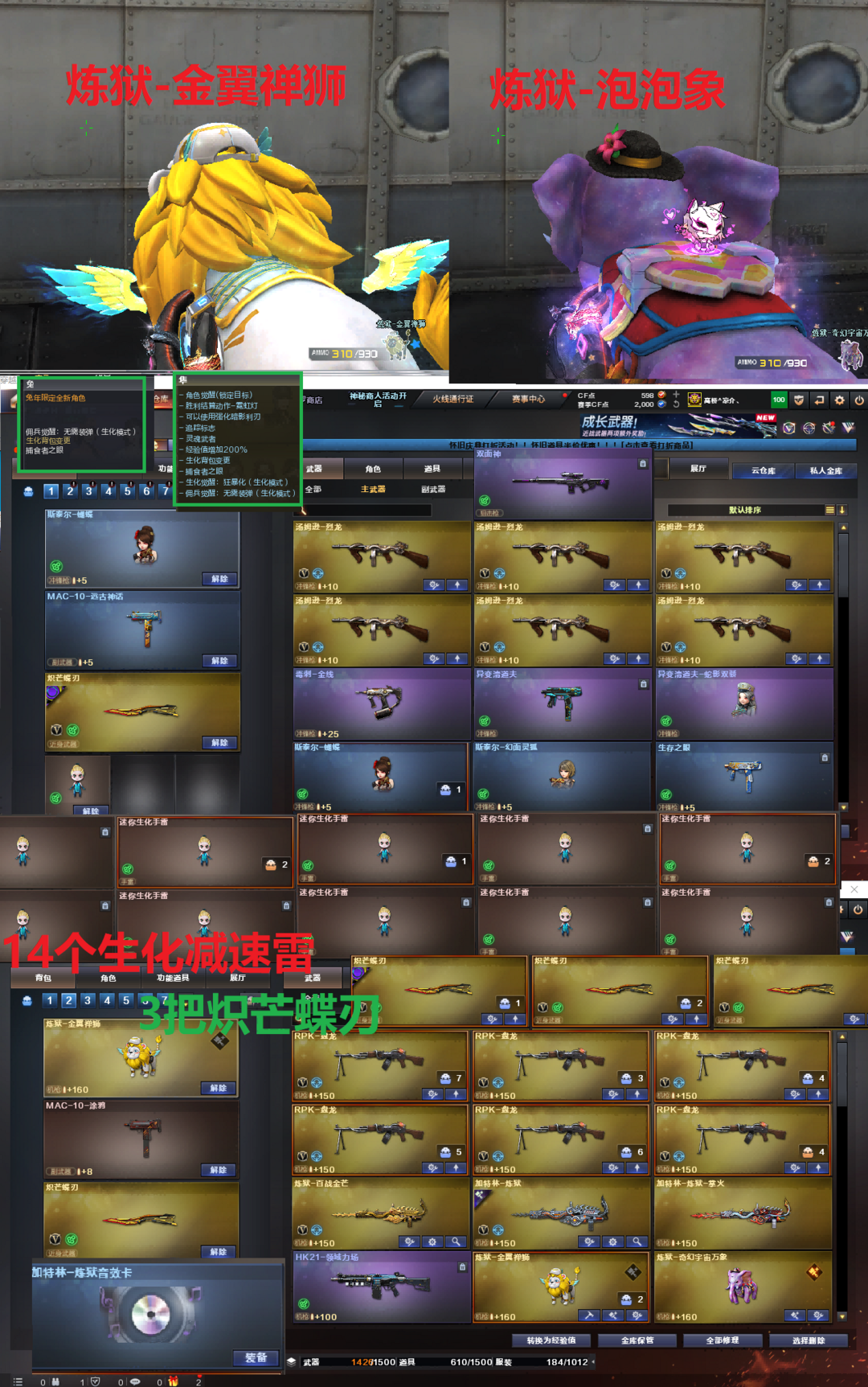 炼狱金翼禅狮+泡泡象|裁决音效幻影|幻神星神2个USP冥王200V6盘6烈蝴蝶清道夫③炽芒蝶刃|隼