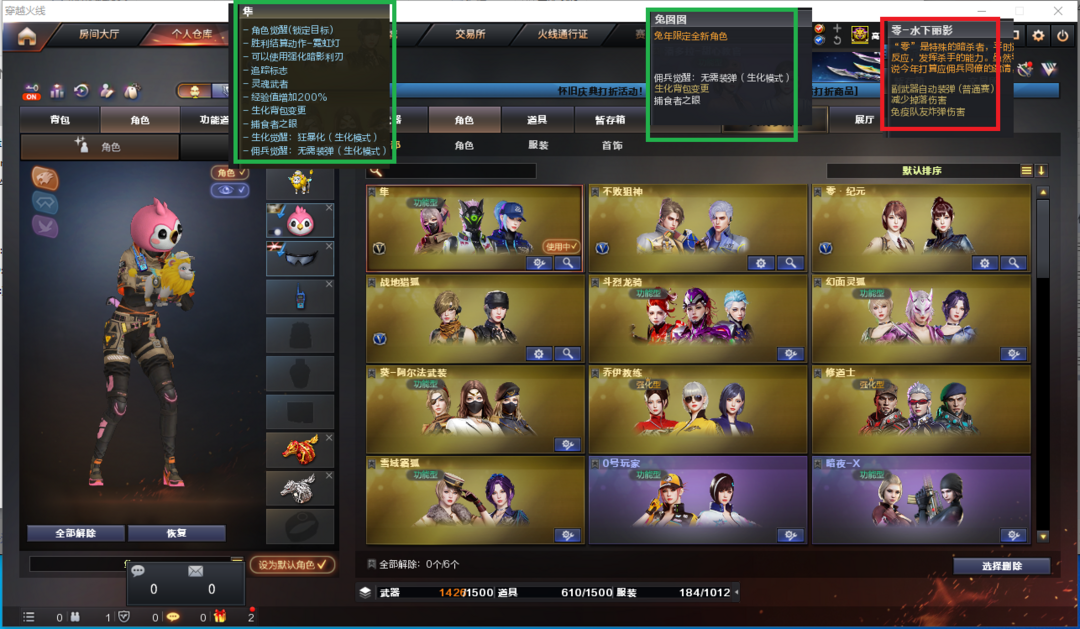 限制: 租号2次及以上 |装备描述:排位:可以、、、、、、、生化四防:(可以变更背包、查看生化僵尸血量):无需换弹、6烈、6盘、炼狱+音效、炼狱-金翼禅狮、炼狱-奇幻宇宙万象、斯太尔蝴蝶、斯太尔幻面灵狐、异变清道夫-小人枪、异变清道夫、双面神、死亡之眼、MAC涂鸦、3把炽芒蝶刃、手斧镜、13个生化减速雷、、、、、、、爆破四防:王者幻神、王者星神、USP雷暴、USP冥王、COP云龙、EP柯尔特荣耀、玄豹左轮、G36幻影、白虎、QBZ金色蔷薇、、、裁决音效、白虎音效、毁灭音效、炼狱音效、朱雀音效、黑骑士音效、、、1套雷霆、4套雷暴、1套玄豹、1套雷暴王者、、、生化四防(隼、兔囡囡)爆破人物(兰-海滩派对)