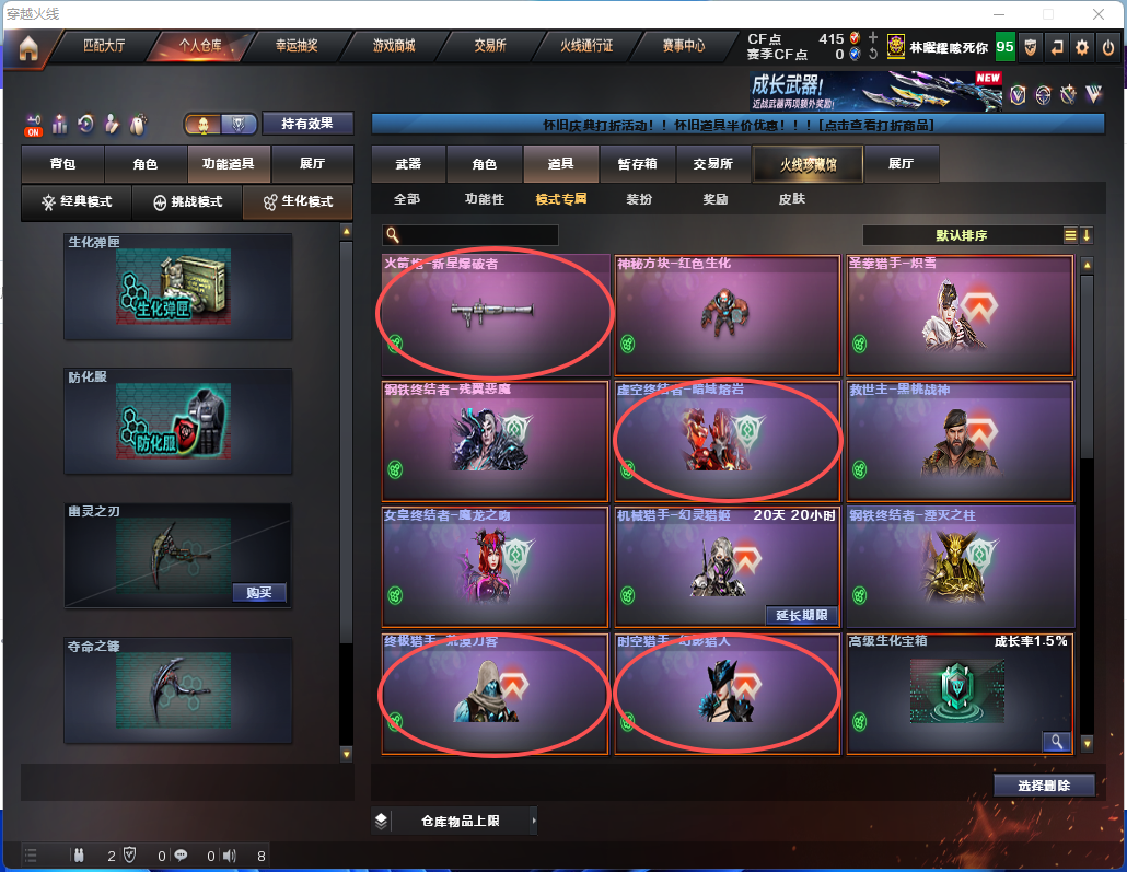 租5送1角色名:生化号