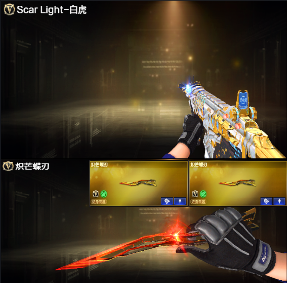 2炽芒蝶刃竞技荣光套装⭐6套竞技手雷包⚡白虎⚡生化变更背包⚡无需换弹⚡斯泰尔蝴蝶⚡清道夫小人枪⚡六烈