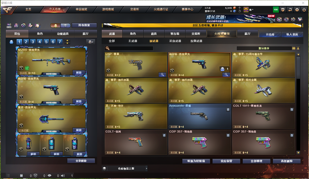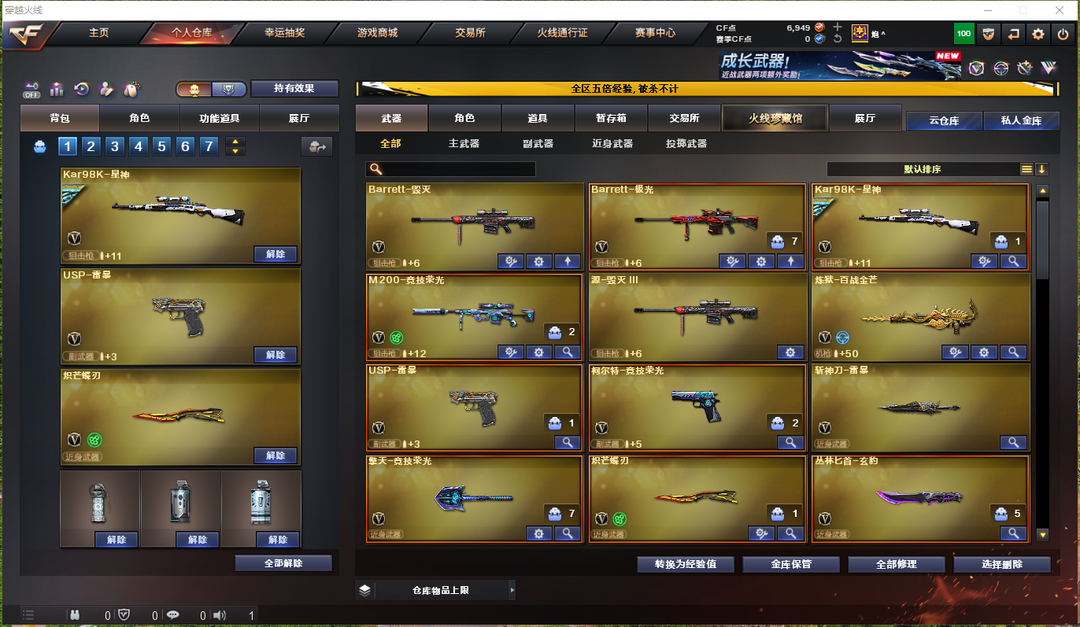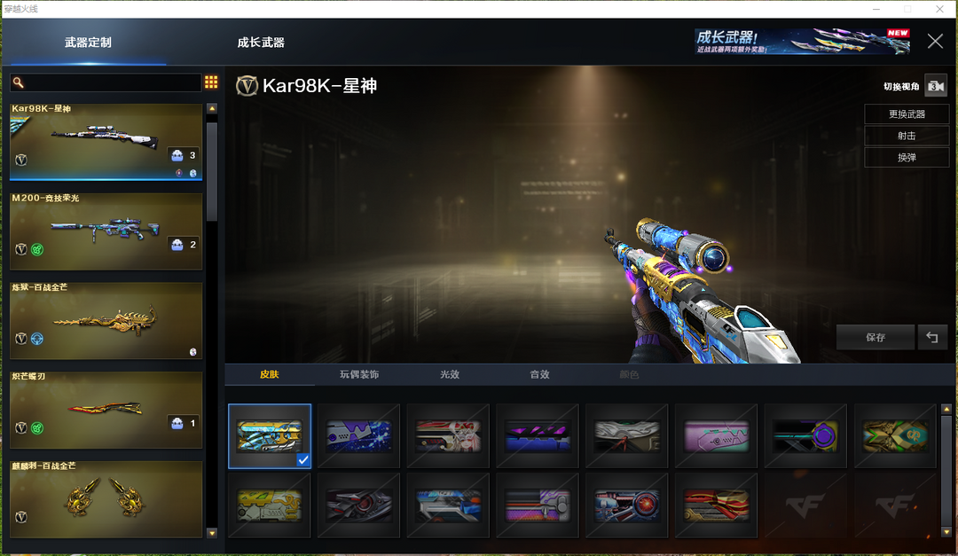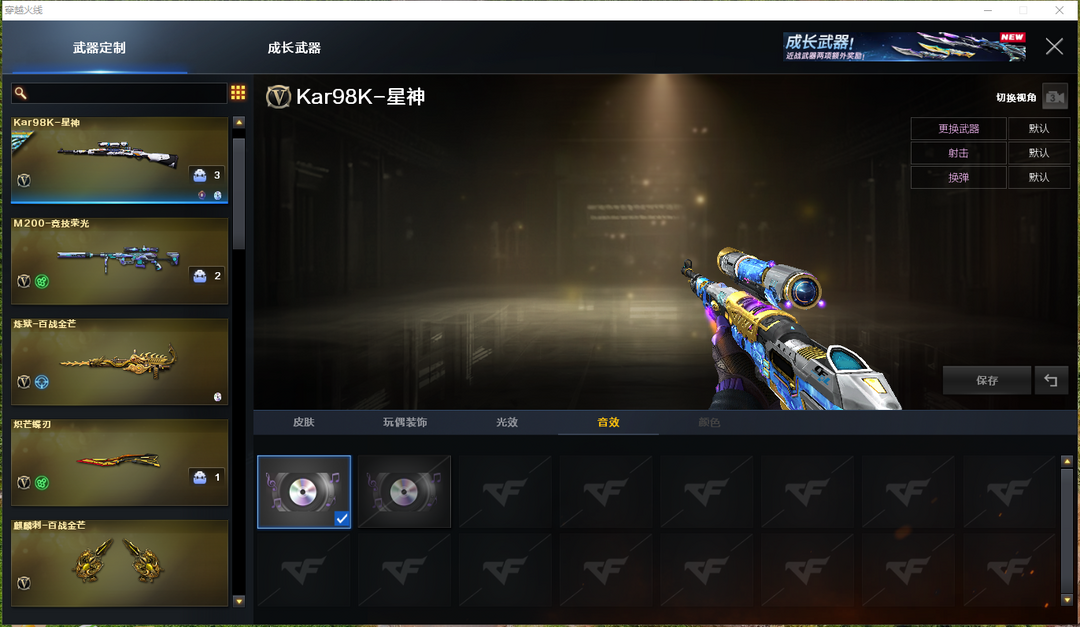 星神+冠军之星+音效卡★L白虎★炽芒蝶刃★竞技荣光套★usp雷暴★云悠悠