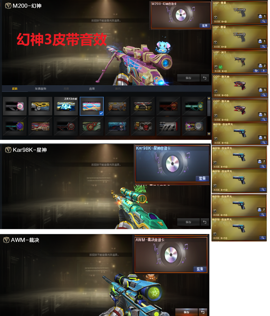 装备描述:排位:可以.、、、、、 、爆破全装:幻神3皮肤带音效(权、宠儿、周瑜)、星神带音效、裁决带音效、M200-竞技荣光、、、2把USP雷暴、USP冥王、COP堕天神、5个竞技荣光柯尔特、、、、G36C幻影、QBZ金色蔷薇、白虎、、、、幻神音效、、裁决音效、星神音效、幻影音效、、极光音效、火麒麟音效、黑龙音效、白虎音效、、、、、雷暴手雷、堕天神手雷、、、、爆破四防(云悠悠、王者貂蝉)