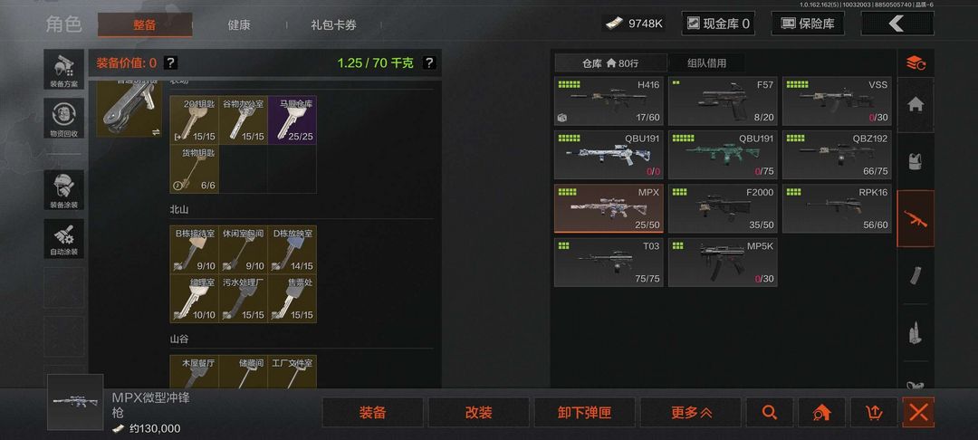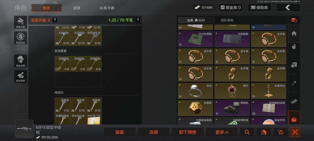 装备描述:赚点零花钱,有950万keb,一些钥匙,一些物资
