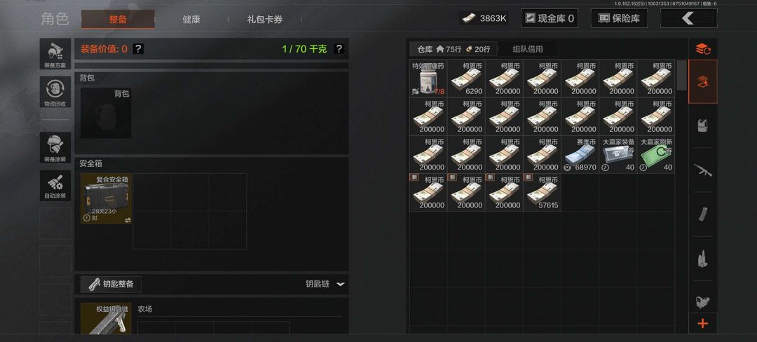 科恩币有 3863k 30天六格 30级全地图解锁 账号段位低 唐人比较多 老板可以来租哦