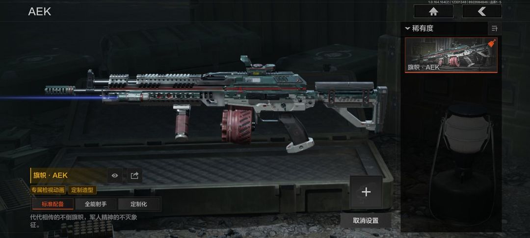 装备描述:【角色皮肤】:硝云余响作战服,都护铁衣战术甲胄,钢铁壁垒作战服,噤声者吉利服,矿山霸主常服;【近战武器】:三尺万仞战术剑,涂鸦利刃,胜利军刀,明刀绣春,冬日冰镐,急袭弯刀,精英指虎,瑞兔折刀,工兵铲,来战开山刀;【手套】:玉鸾挂枝手套,角弓得控手套,战术甲胄防护手套,急袭手套;【突击步枪】:竞技FAL,战术大师FAL,骑士之剑M4A1,伦琴幻影H416,水果AR57,突围FAL,缟兵玄墨AKM,巅峰M4A1,德尔塔小队M4A1,竞技M4A1,炎夏浪花H416,德尔塔小队H416,北国内卫MDR,山地伪装AK74N,骑士之剑AKS74U,钢铁真理F2000,雪山之王F2000,涂绘猎人AR57,骑士之剑ACE31,胜利锋刃AEK,北国内卫AN94,缟兵玄墨T03,玄戈梨花T03,林地数码T03;【冲锋枪】:湖冰倒影MP5,玄戈梨花MPX,涂鸦MPX;【栓动步枪】:骑士之剑SJ16;【轻机枪】:长缨风掣RPK16,飞鲨RPK16,战术大师RPK16,怒火重燃RPK16