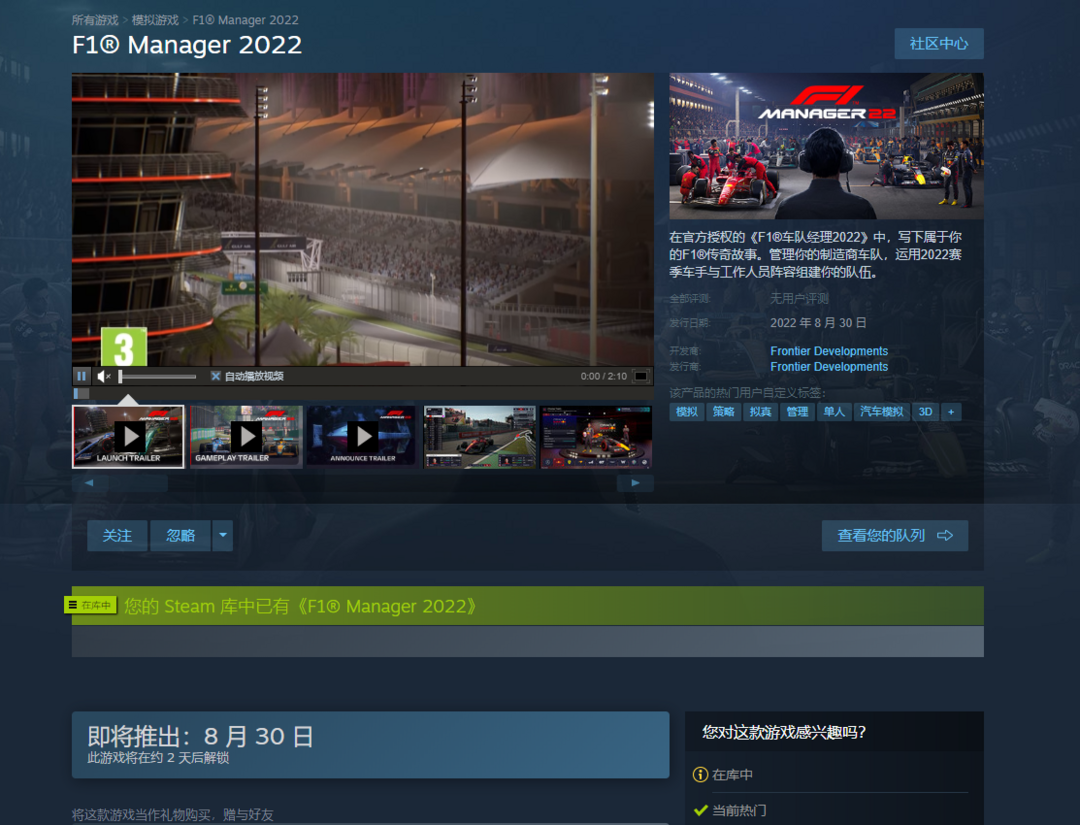游戏区服:F1车队经理2022-Steam-Steam