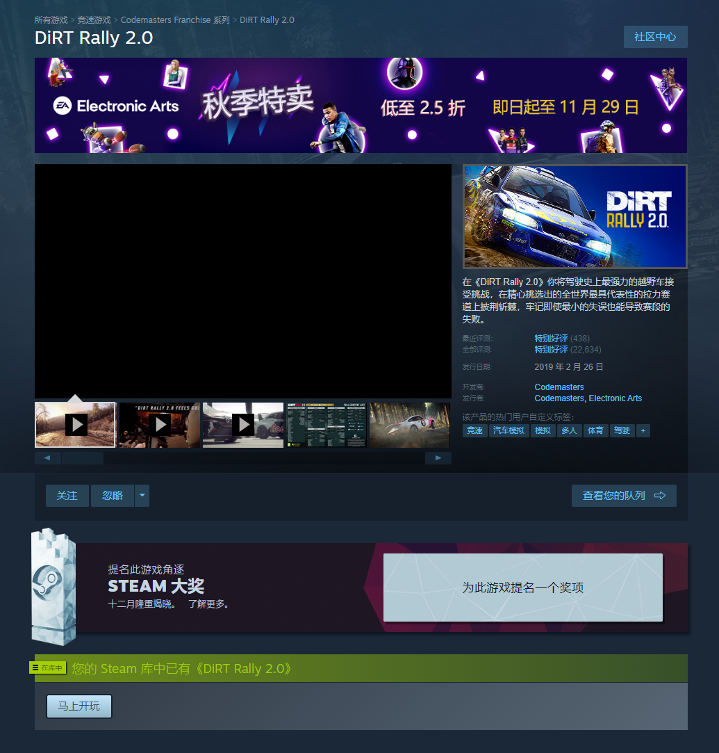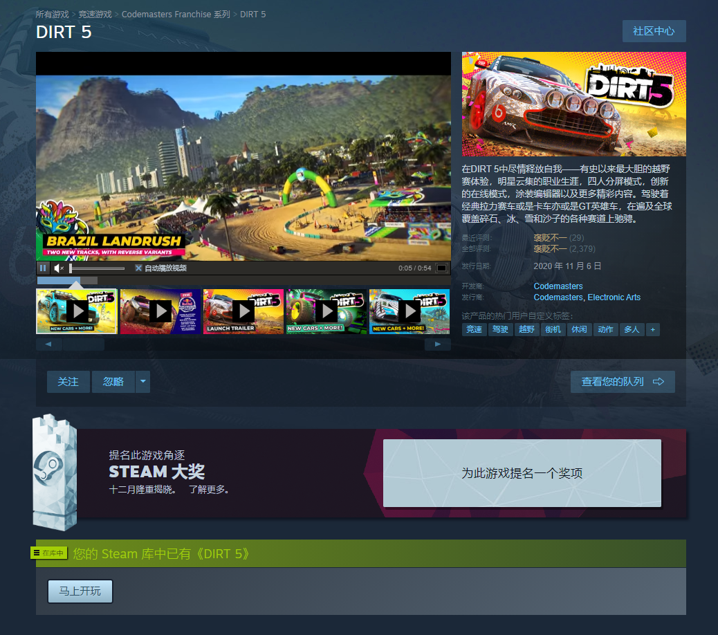 游戏区服:尘埃拉力赛2.0-Steam-Steam