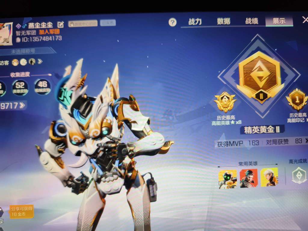 皮肤52英雄16枪皮46✅主英雄空空皮肤多✅荣耀猎手✅光明神女✅渊龙✅雪山之鹰✅永恒玫瑰✅森芒俏狐✅