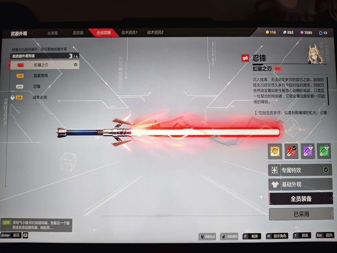 18红皮,有激光剑喵和闪亮特效道具喵,生化卡组齐全喵,共计500皮肤喵,体验入坑皆必备的喵