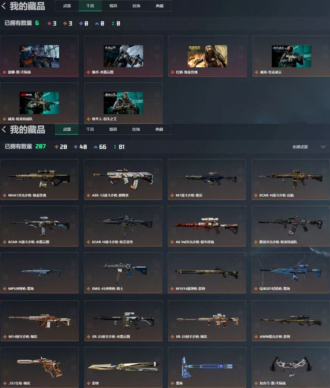 装备描述:3红露娜 蝴蝶刀 23金皮 露娜-黑-天际线 ❤️麦小文-水墨云图❤️影锋❤️红狼-蚀金玫瑰