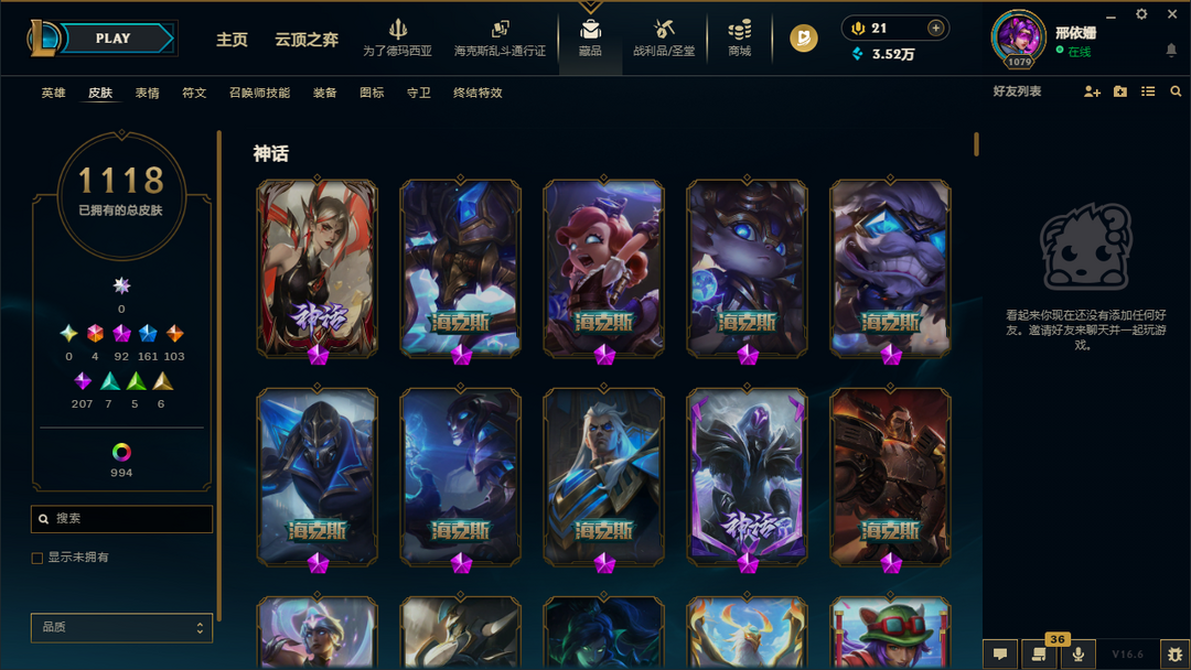 ██ 全英雄 2800皮丨100神话丨可排位丨IG卡莎丨剪纸女刀丨女帝格温丨冰雪皎月丨莲华莉莉娅