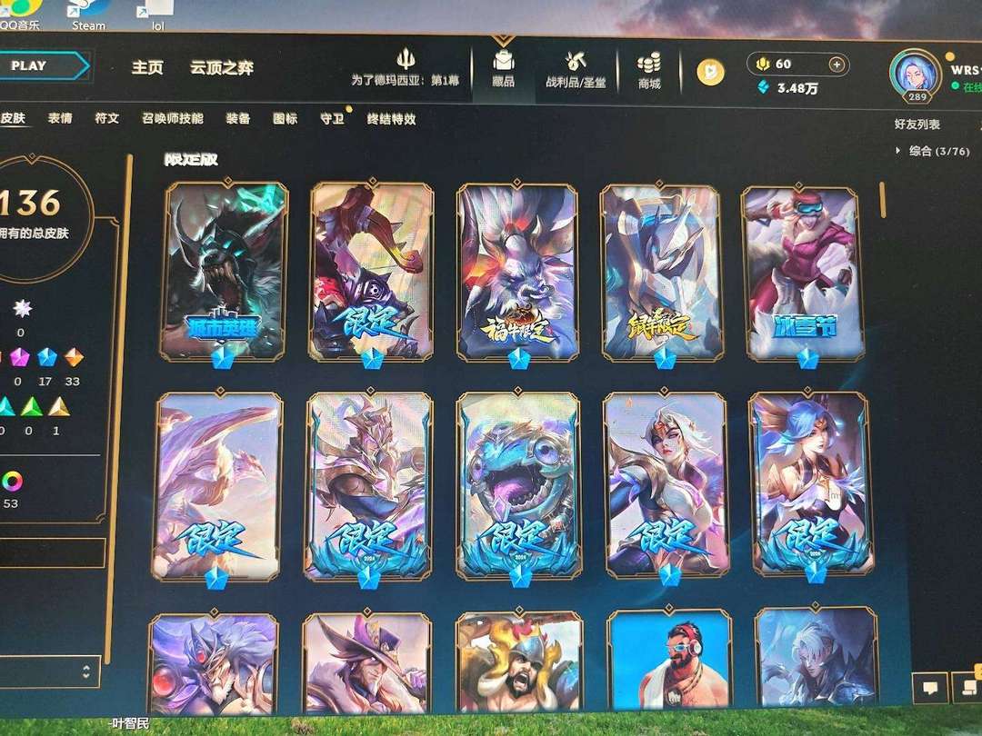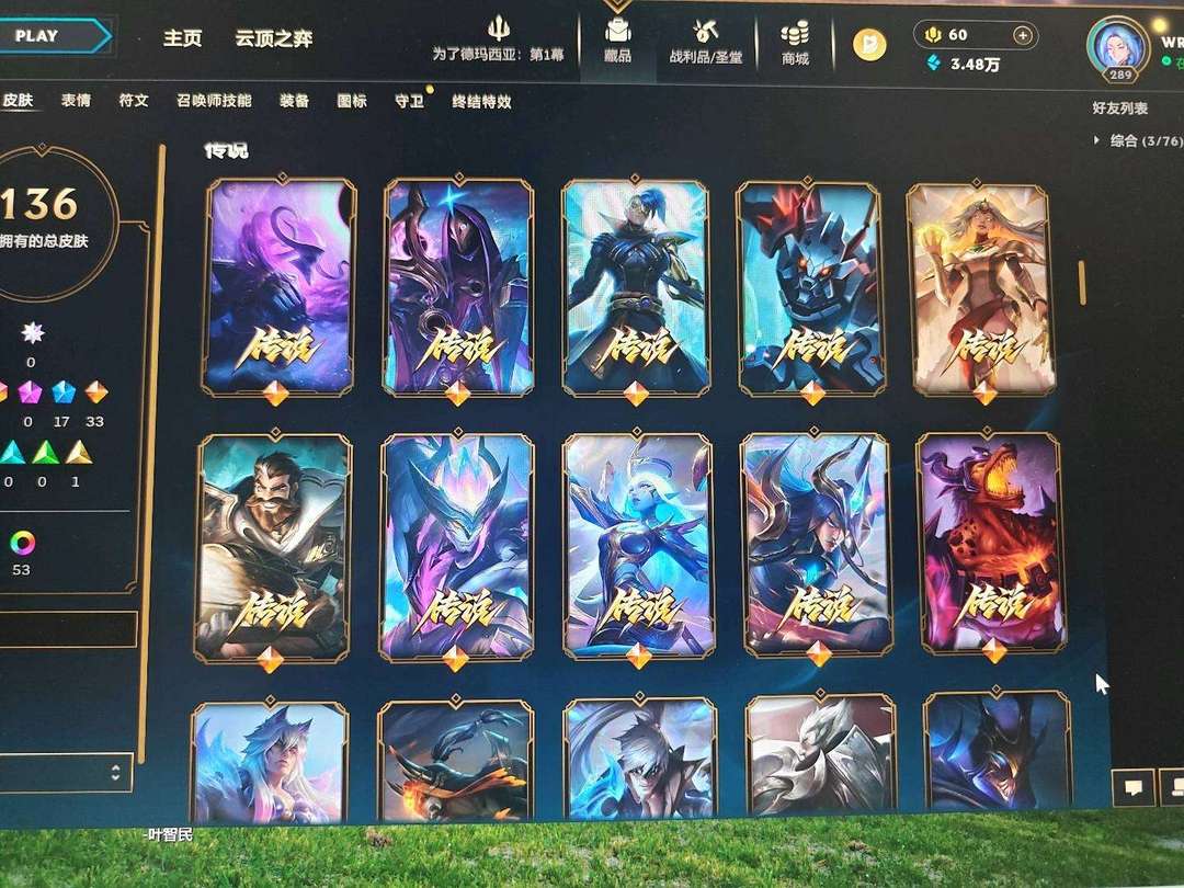艾欧尼亚/单双铂金可排位/热门英雄均有手感极好的皮肤/大元素使/黑夜使者/神龙李青等等