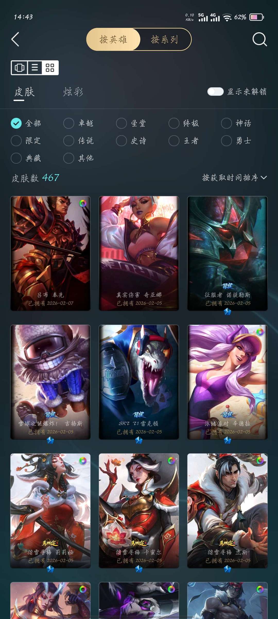 【可排位】⭐500皮⭐467原皮+30臻彩⭐艾欧尼亚⭐实时更新⭐极速上号
