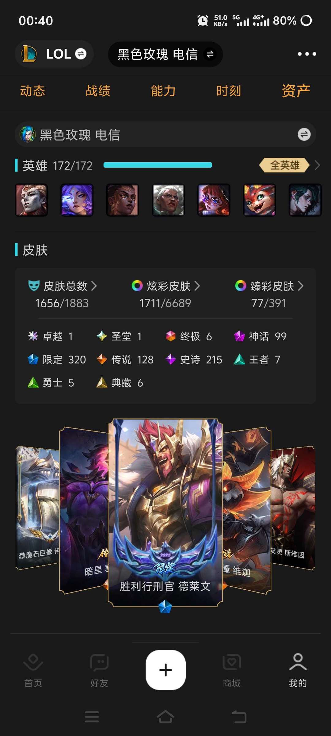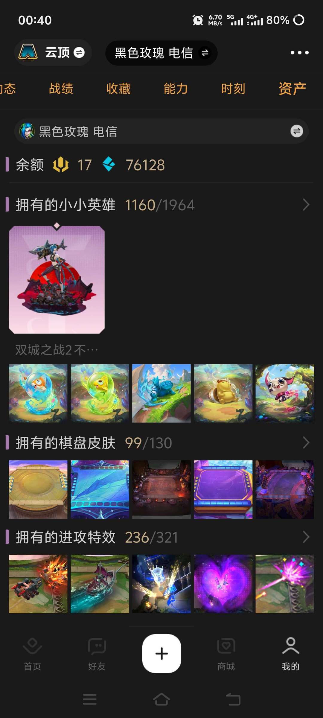 装备描述:海量皮肤,至臻皮肤,超多棋盘,小小英雄,神话英雄,