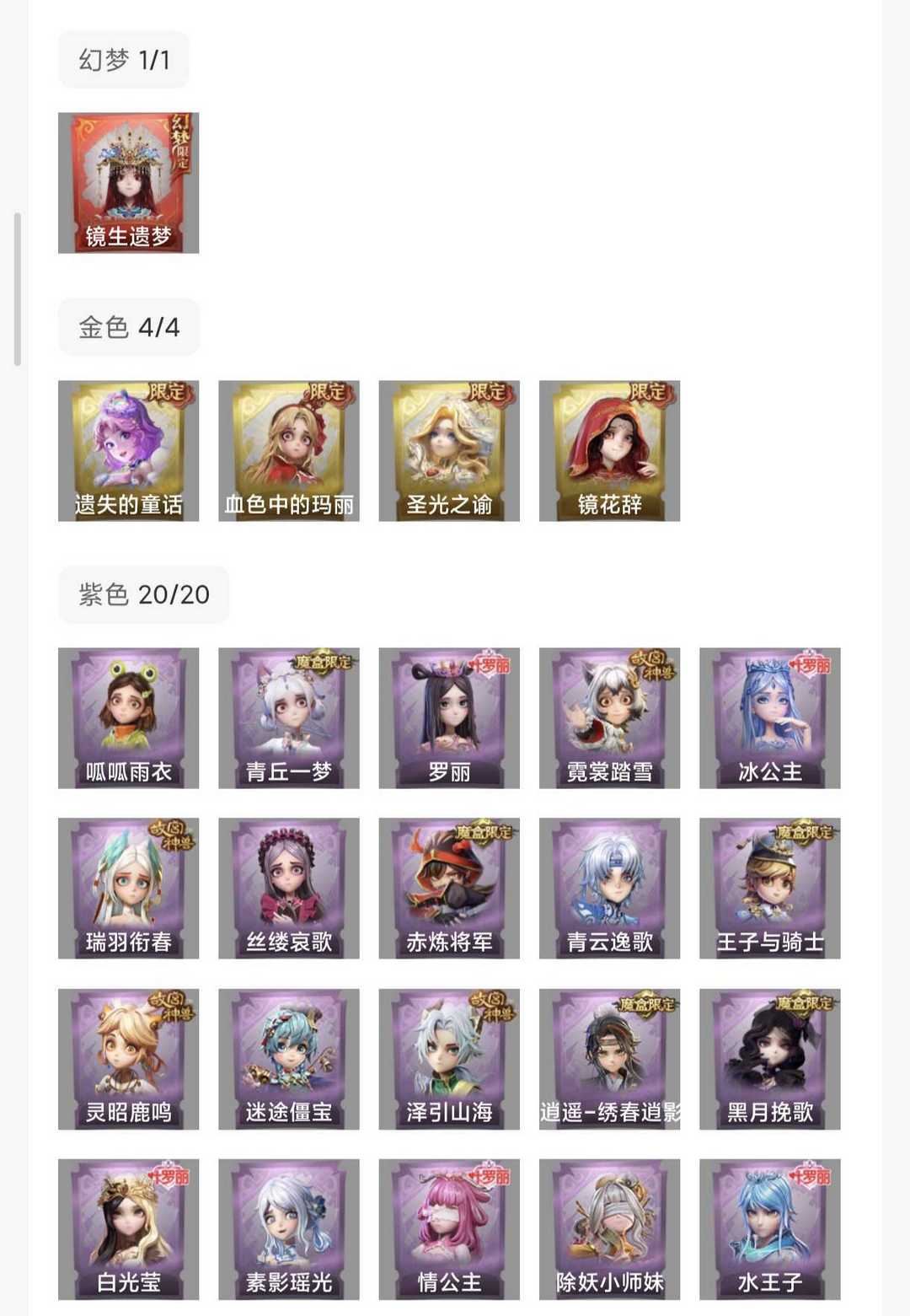 装备描述:莲华渡已补⛲全金全紫⛲顶尖双形态幻梦套装-新皮镜生遗梦已入⛲1红5金20紫5赛季满魔盒⛲满图鉴24全满紫道具 ⛲兔宝10月19到期⛲ 满抽5耀世⛲新皮小狗蛇点点鞭小鲨匕首⛲绝版赤炼将军⛲极品权威双字ID⛲满故宫⛲叶罗丽情公主冰公主⛲满氪条号⛲顶配新魔盒皮肤-绣春逍影 ⛲毁号进小黑屋哦⛲ 镜花辞⛲遗失的童话⛲血色中的玛丽⛲满武器⛲满梦居⛲小黄全皮⛲绝版赤练将军赤色之刃青瓷红蓝刀 s1(128魔盒)青丘一梦 青瓷 扭扭仙人掌 s2(128魔盒)赤炼将军 焰骨 鼠鼠小跟班 s3(128魔盒)黑月挽歌 永眠曲 在逃小新娘 s4(128魔盒)稀世魔盒 有王子与骑士 s5(128魔盒)稀世魔盒 绣春逍影 绒团小狐狸 可爱的宝子们喜欢收藏~ 本账号晚间时段更划算哦~喜欢熬夜的宝子收藏盯紧哦~ 喜欢本账号请点 ☆收藏☆ 方便下次租用,谢谢光临惠顾!喜欢本账号请点 ☆收藏☆ 方便下次租用,谢谢光临惠顾!