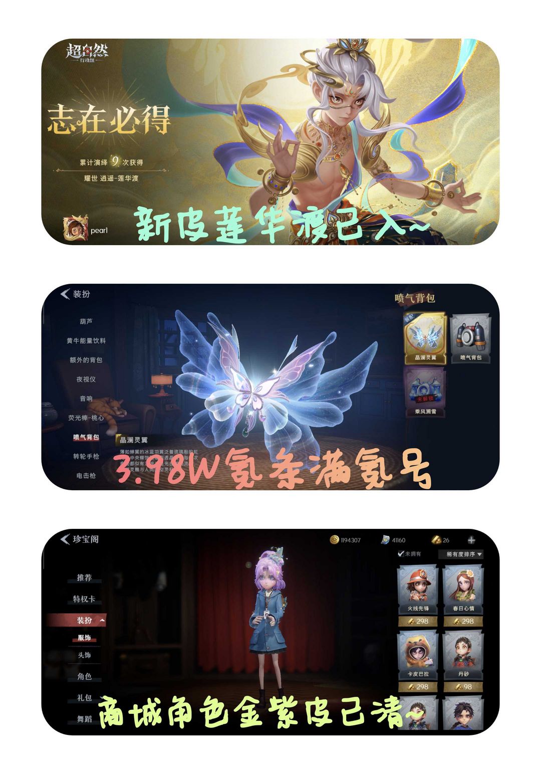 装备描述: 顶尖有晶澜灵翼⛲新皮莲华渡镜生遗梦已入⛲1红5金18紫3赛季魔盒⛲满图鉴25紫道具⛲满抽五耀世⛲新皮小狗蛇点点鞭⛲绝版赤色之刃⛲极品权威ID⛲满故宫⛲满梦居⛲满金皮满氪条号⛲巫灵儿红金全皮满金皮⛲8金6紫舞蹈 ⛲毁号进小黑屋哦⛲ 镜花辞⛲遗失的童话⛲血色中的玛丽⛲圣光之谕⛲满武器⛲满梦居⛲小黄全皮⛲绝版赤色之刃红刀 s3(128魔盒)黑月挽歌 永眠曲 在逃小新娘 s4(128魔盒)稀世魔盒 有王子与骑士 可爱的宝子们喜欢收藏~ 本账号晚间时段更划算哦~喜欢熬夜的宝子收藏盯紧哦~ 喜欢本账号请点 ☆收藏☆ 方便下次租用,谢谢光临惠顾!喜欢本账号请点 ☆收藏☆ 方便下次租用,谢谢光临惠顾!