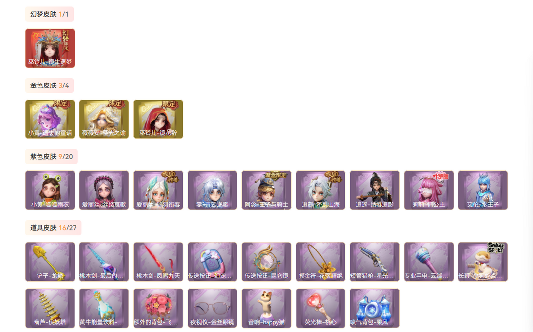 装备描述:满抽镜生遗梦♥3耀世9紫 小狗蛇♥镜花辞 遗失的童话 圣光之谕 累氪2480