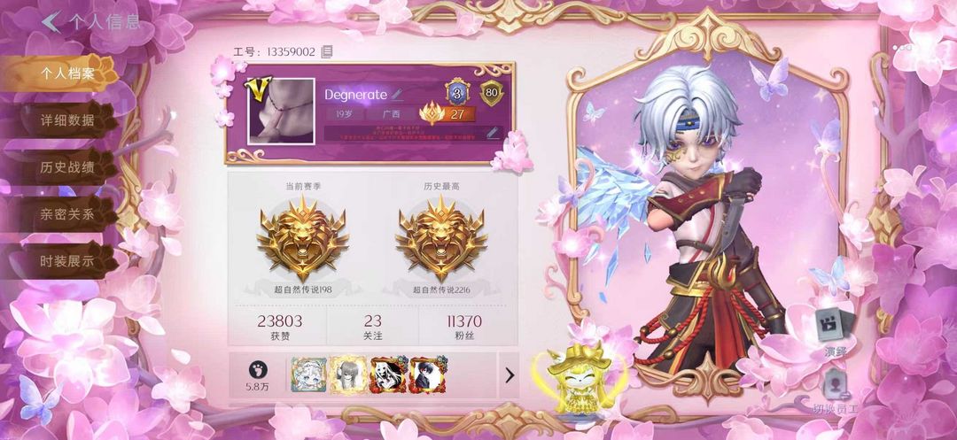 限制: 撤单率<30%才可租用此帐号装备描述:任何理由撤单全网拉黑 (好运榜国服27名) 左下角【收藏】享受不定时巨大优/惠 【恶意撤单恶意使用铲铲币全平台拉黑】 1星耀2幻梦 9金耀世(全图鉴限定全有) 所有池子满抽 S1/2/3/4/5/6赛季豪华 【全道具皮肤】 祝宝子们玩的开心~
