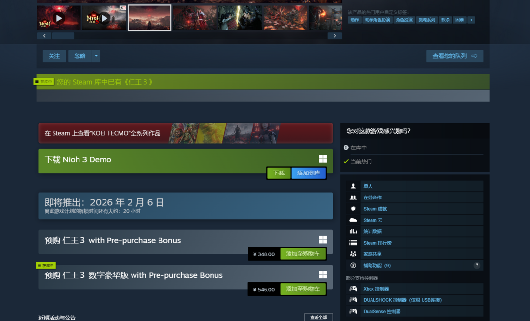仁王3【仁王3-Nioh 3】546-预购-完全版-全DLC-全季票-商城清空-抢先体验游戏!