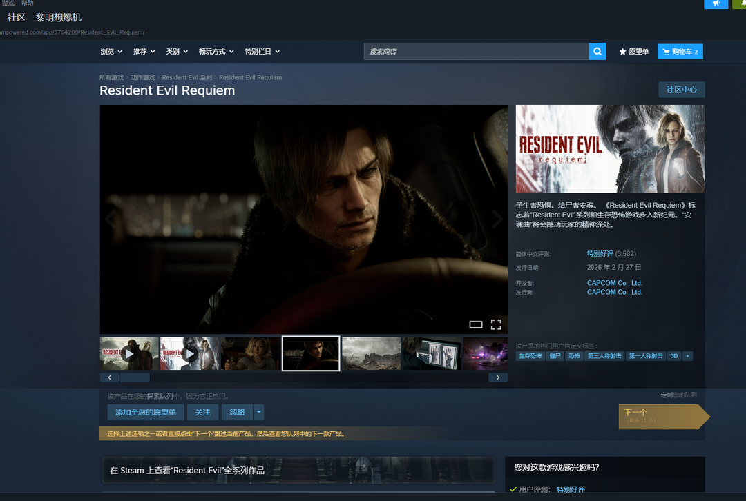 装备描述:《生化危机9:安魂曲-Resident Evil Requiem》-终极版!全DLC豪华版全部已入steam库