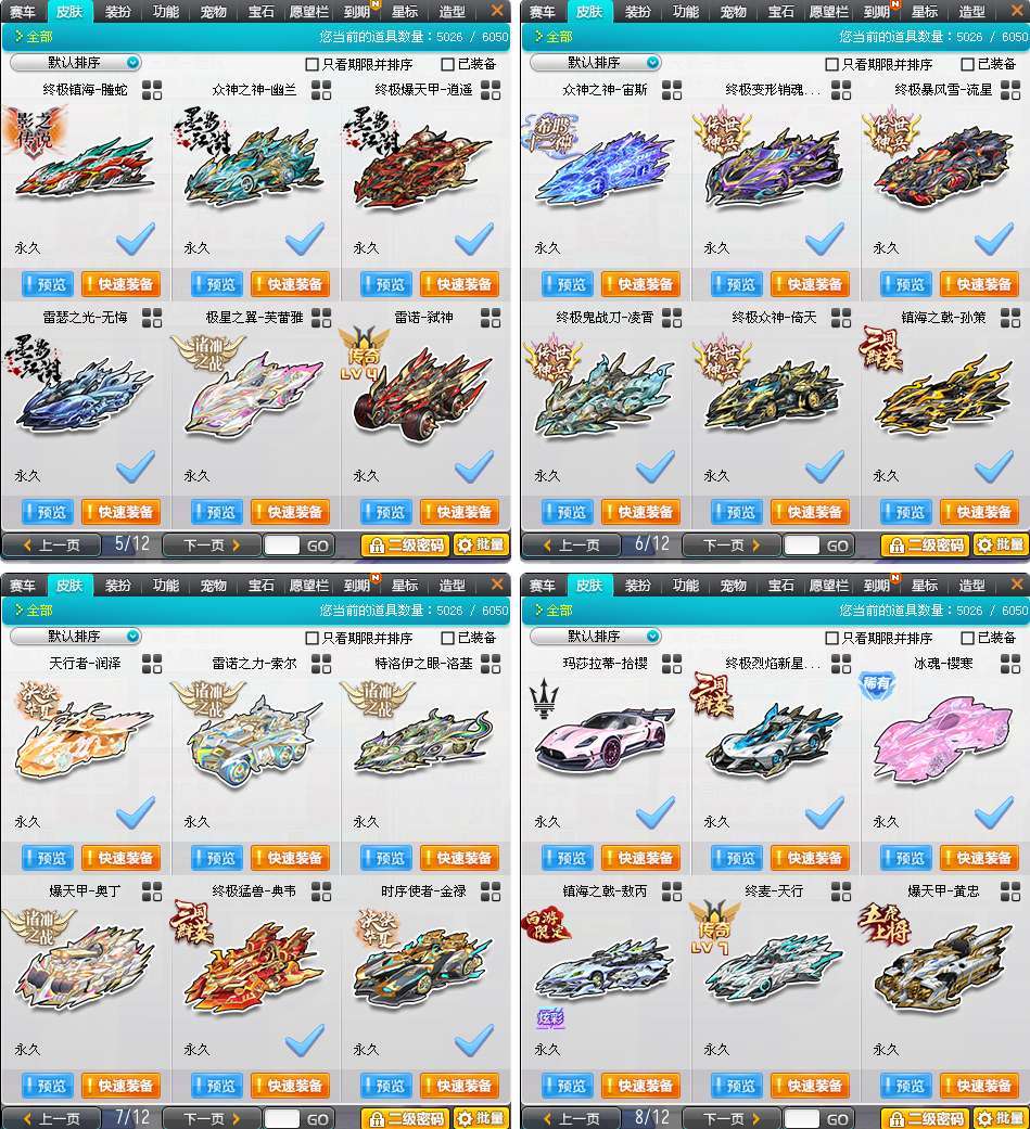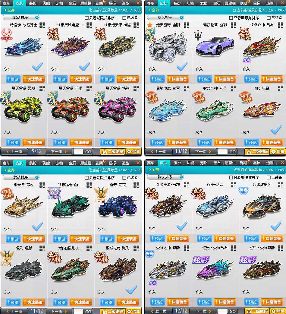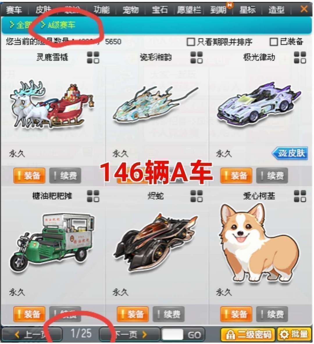 装备描述:50辆S车全部满改5项全29,51S车,82皮肤,5T2,14T1,149A车,1T3创世之神,178页女装套装