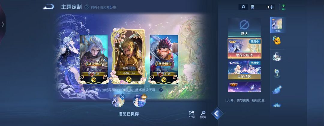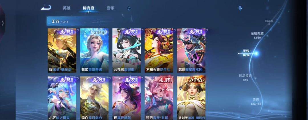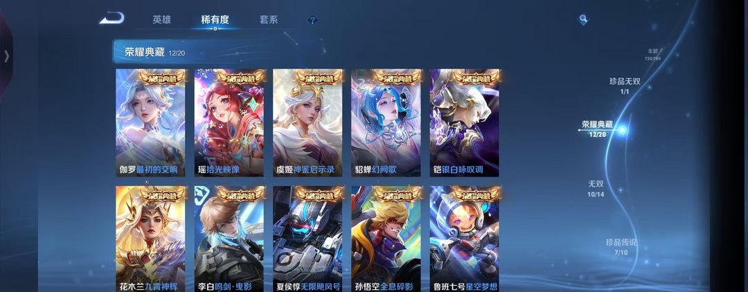 V10丨725皮肤14水晶10无双7珍品小兵皮肤丨貂蝉繁花+天幕丨4金标132按键丨包天特惠