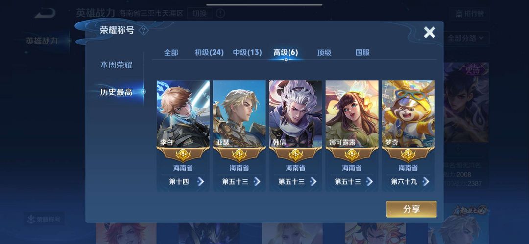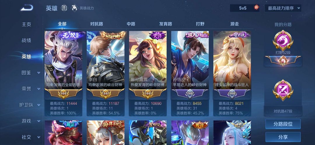 【V10 423皮典藏:5】马可怪盗♥韩信群星♥6省标❤万战金标❤国服❤️52段打野45段对抗
