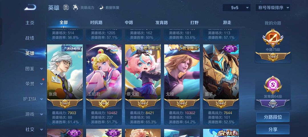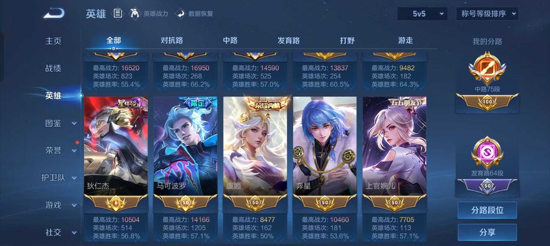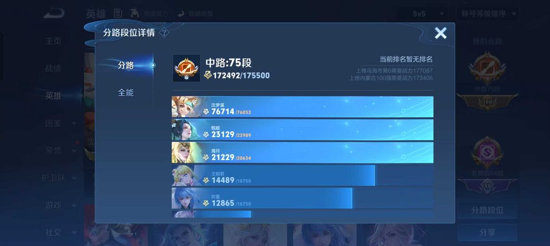 75段中路⭐历史1.6w数字9沈梦溪⭐近1.7w小国甄姬孙尚香⭐64段发育路⭐多省标⭐五排开黑首选