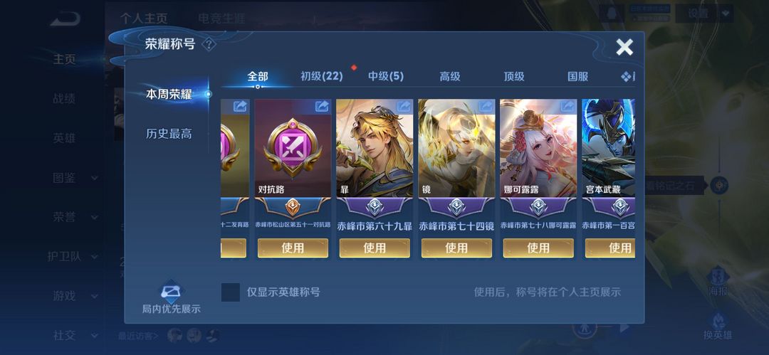 游戏区服:王者荣耀-QQ苹果-QQ账号 -手Q135区-掠影金秋