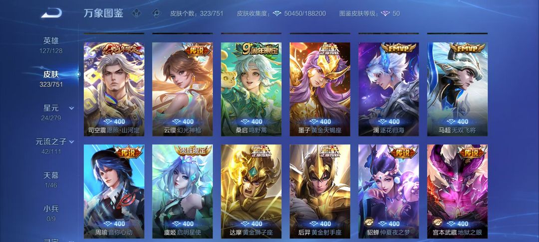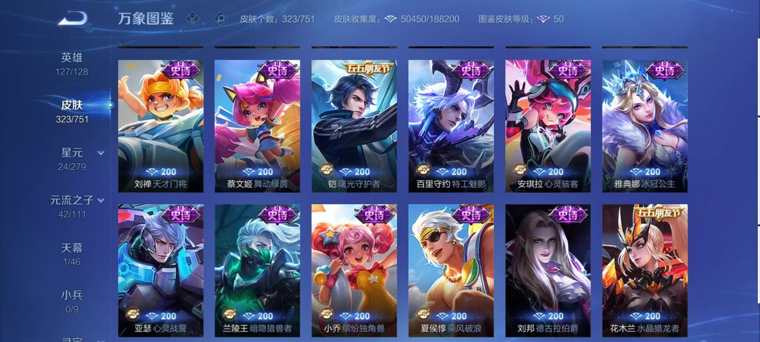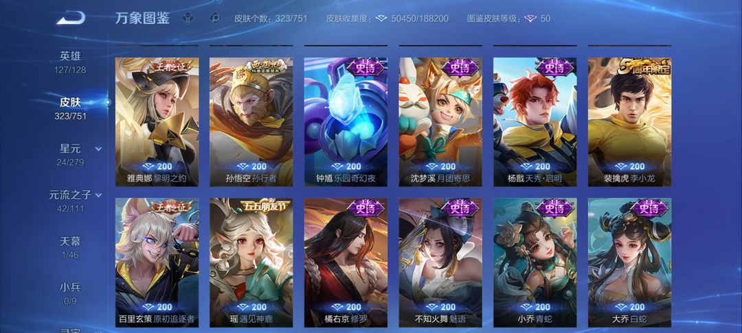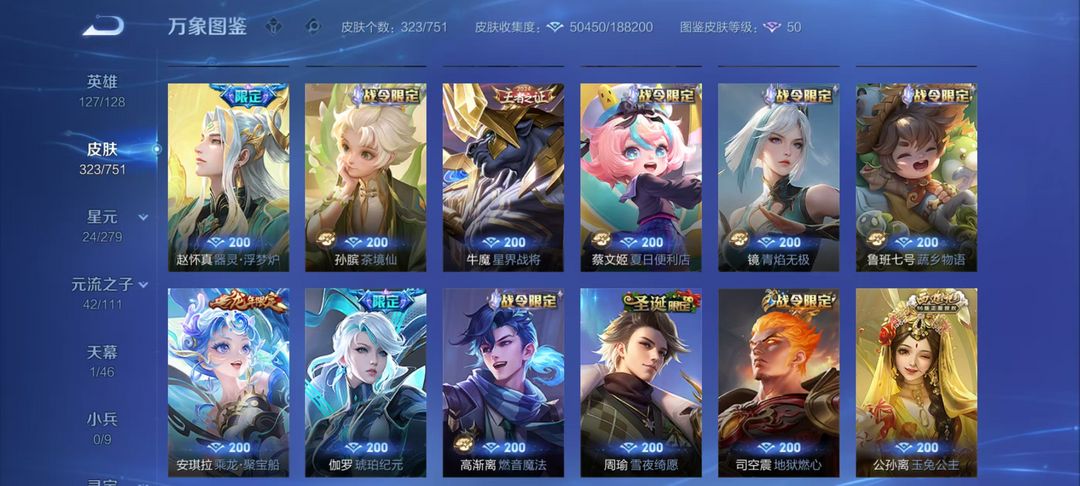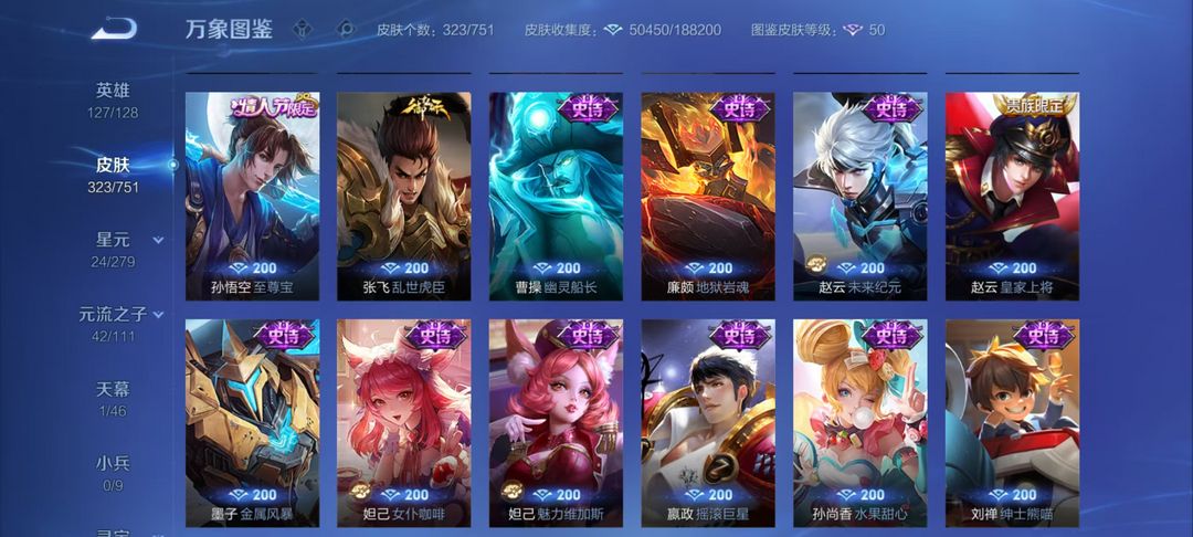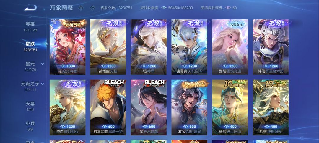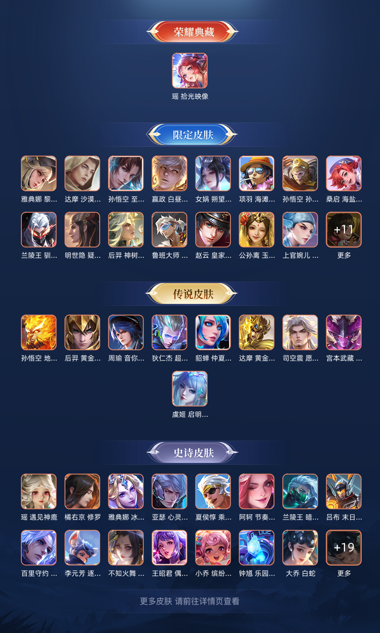 瑶-拾光映像/孙悟空无相/李白碎月剑心/凯神罪/诸葛亮天机白泽/韩信群星魔术团/甄姬冰雪奇缘/3珍品