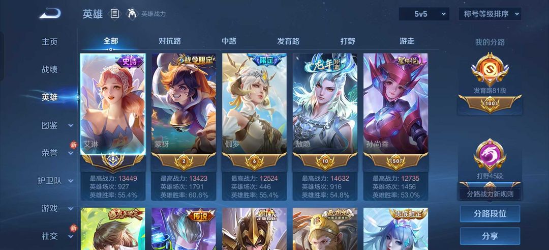 81段发育路⭐历史1.3w战力大国标艾琳⭐340高质量皮射手号⭐数十个金标⭐开黑带妹必备⭐绝活艾琳