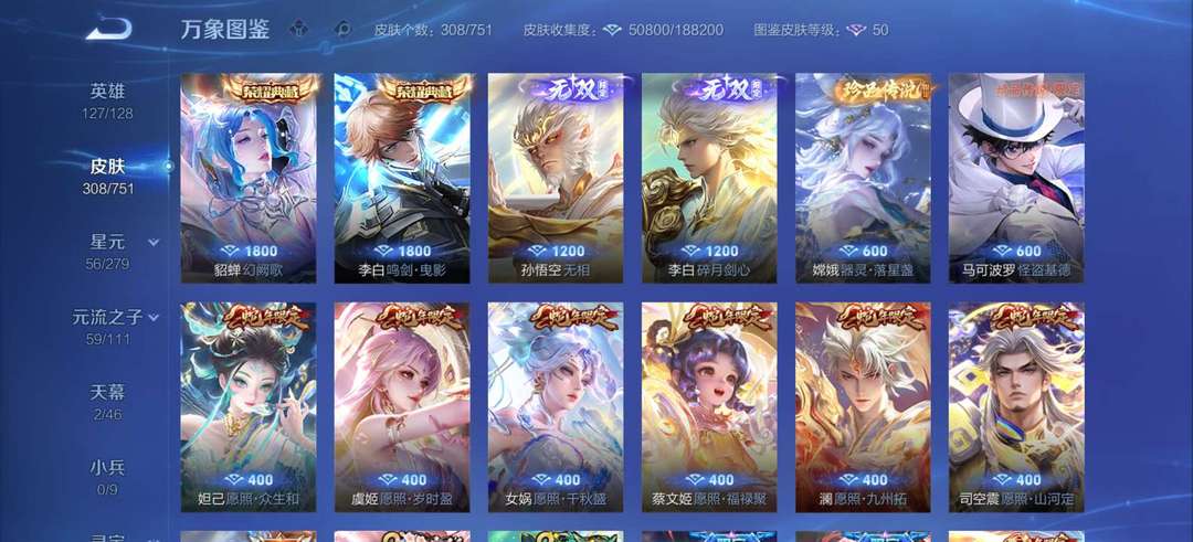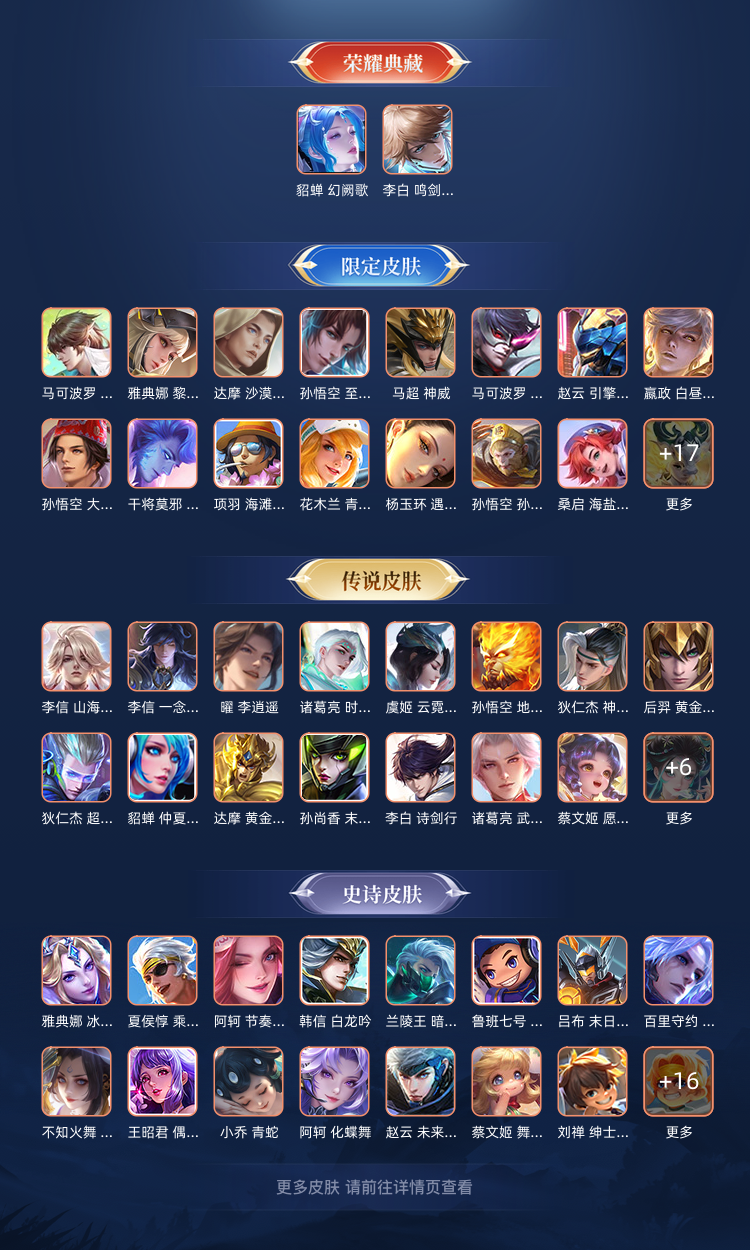 李白貂蝉典藏,李白猴子无双,马克柯南,嫦娥珍品,李逍遥等传说皮