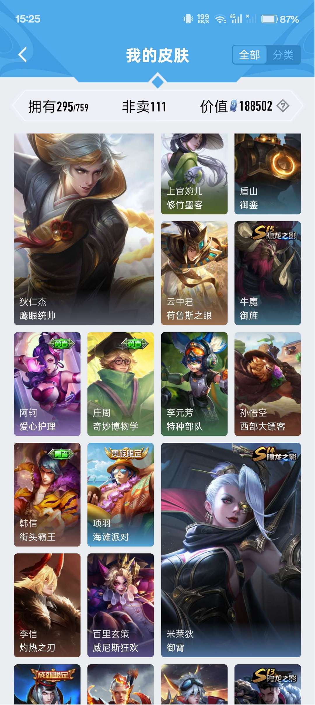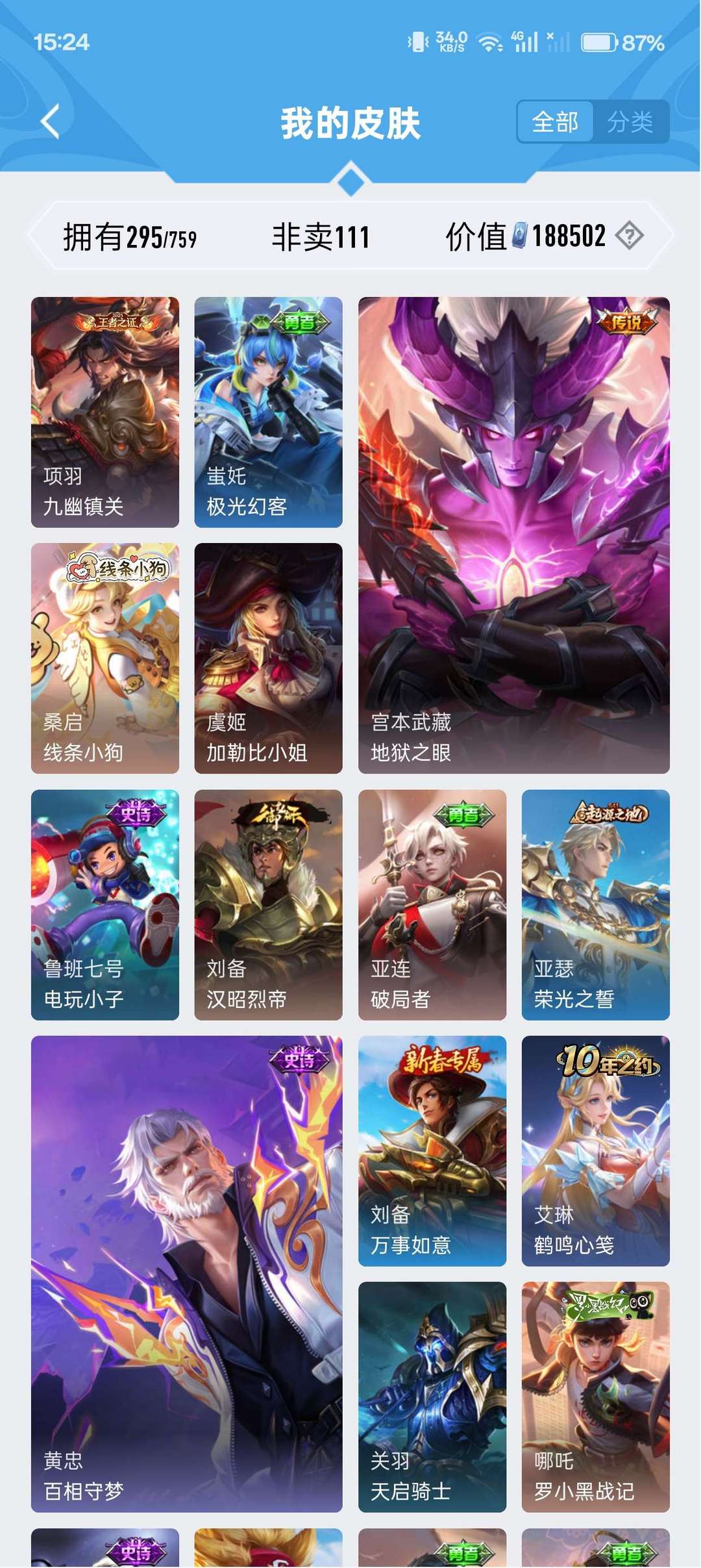 原V7账号,满级铭文,韩信典藏,猴子至尊宝,澜年限,李信一念神魔等众多亮点皮肤