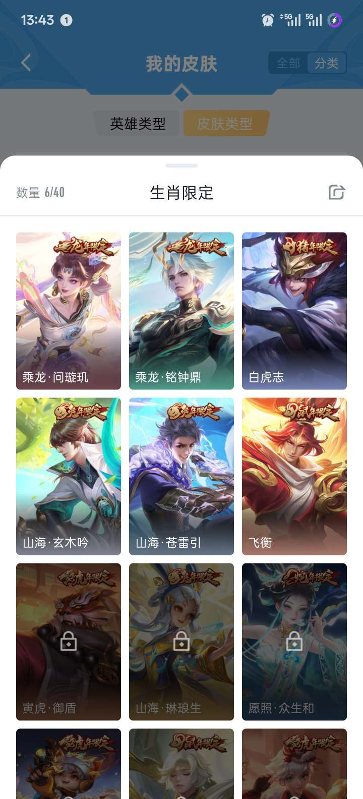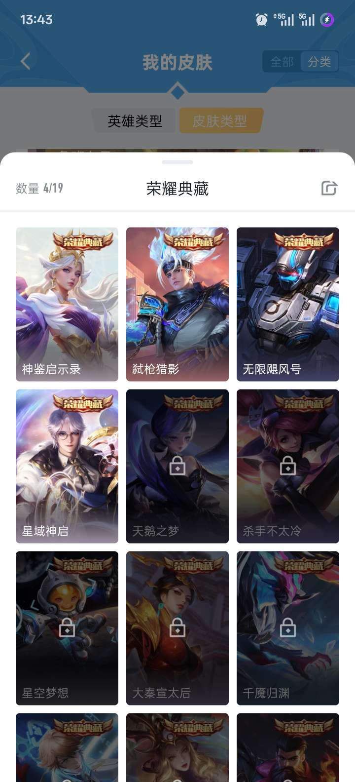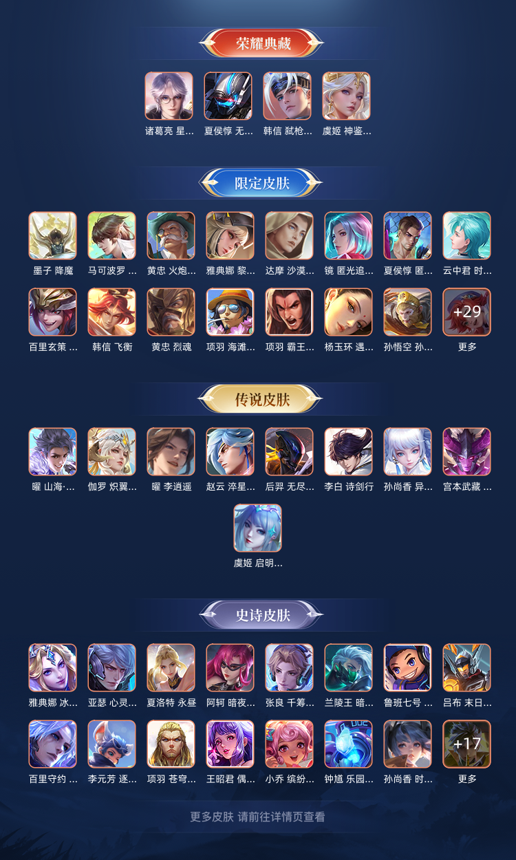 4典藏:诸葛,虞姬,夏侯,韩信年限:玄策白虎,典韦、曜史诗级若干
