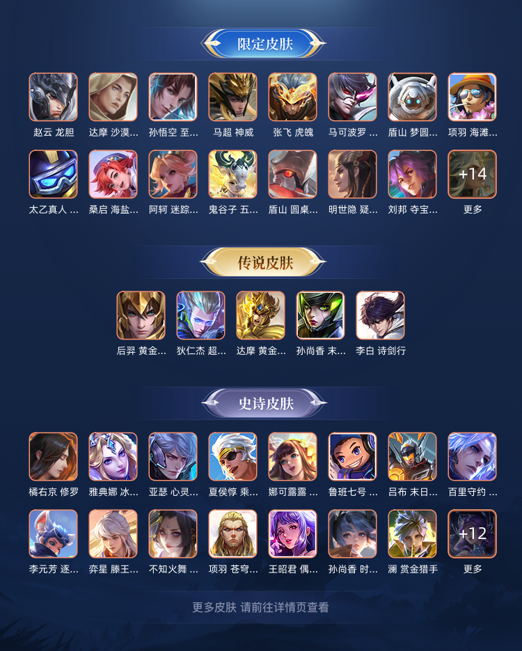 各种限定皮肤,至尊宝 限定史诗皮,五虎上将赵云马超张飞 末日机甲