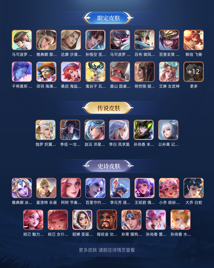 无双韩信*淬星耀世赵云*一念神魔李信*惊梅引宫本*山海马可波罗*白虎志百里玄策*凤求凰李白等限定史诗