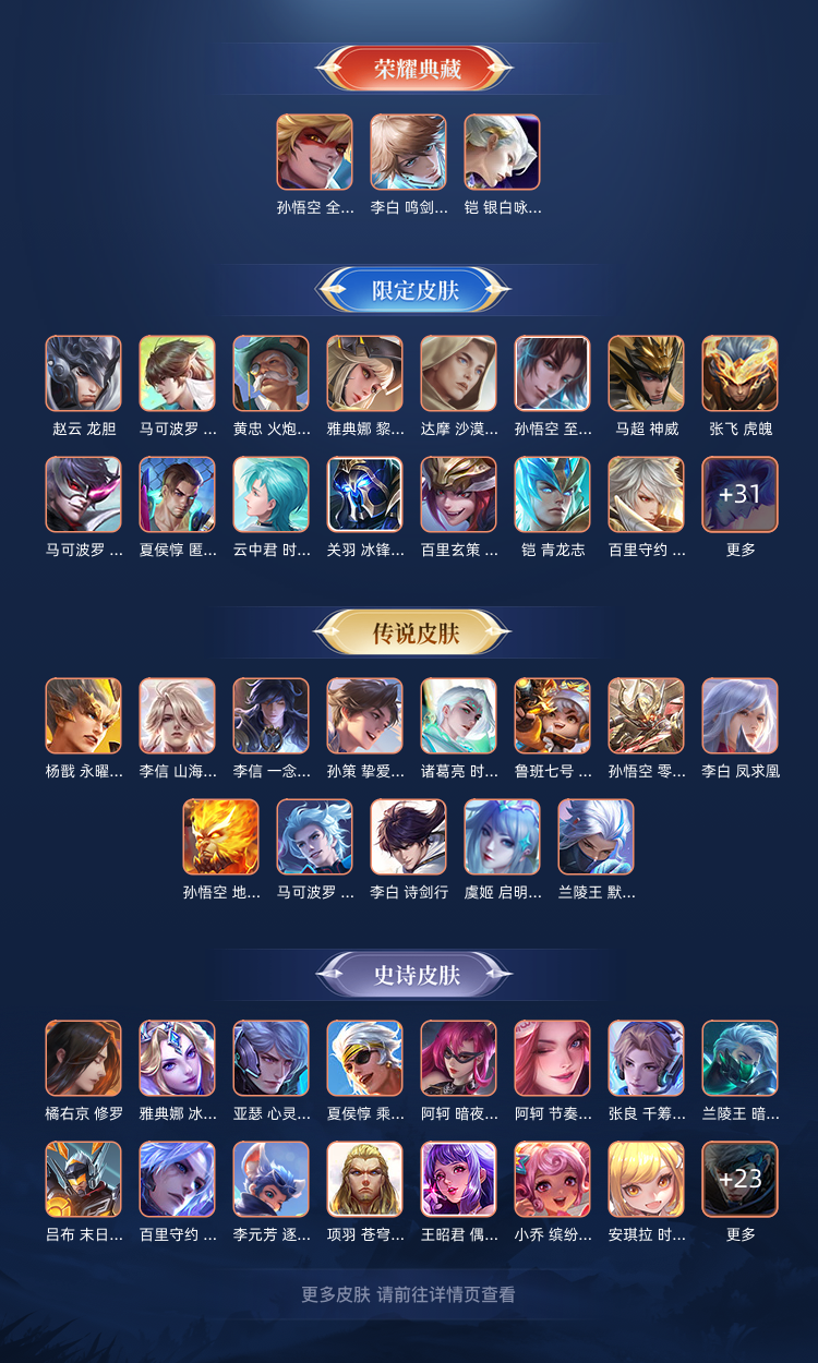 三个荣耀典藏+许多限定皮肤+非凡王者+352皮肤+127英雄满铭文