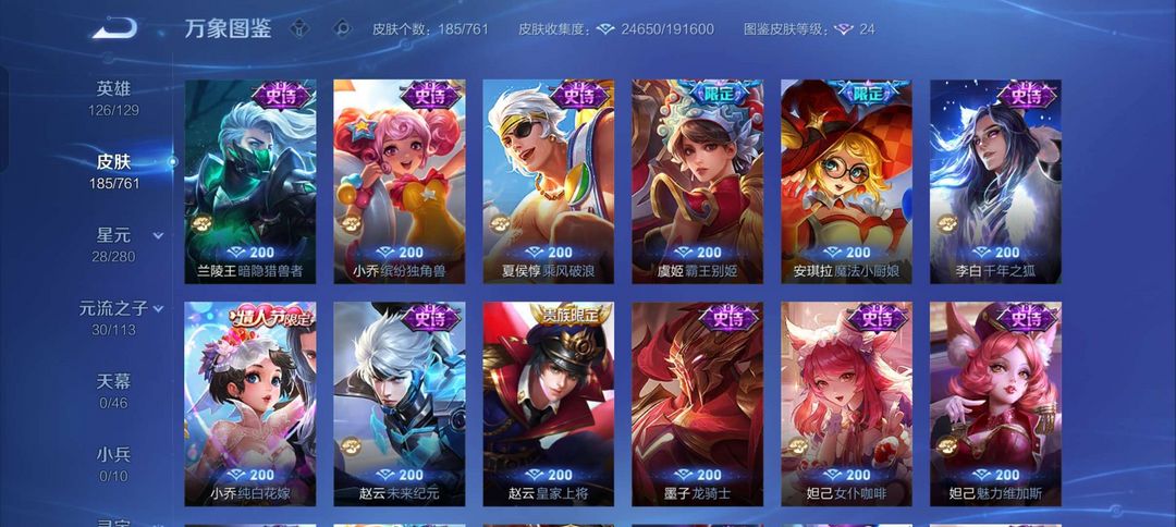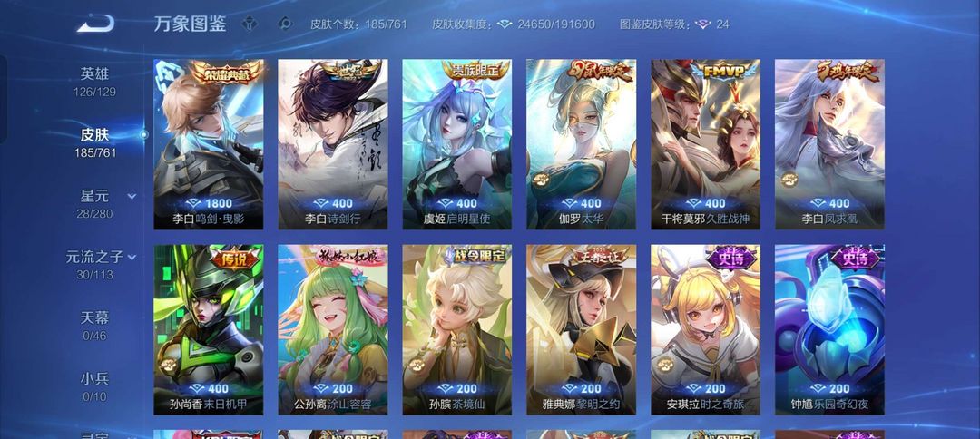 铭文150段位Ⅰ铂金皮肤185个荣耀典藏李白凤求凰