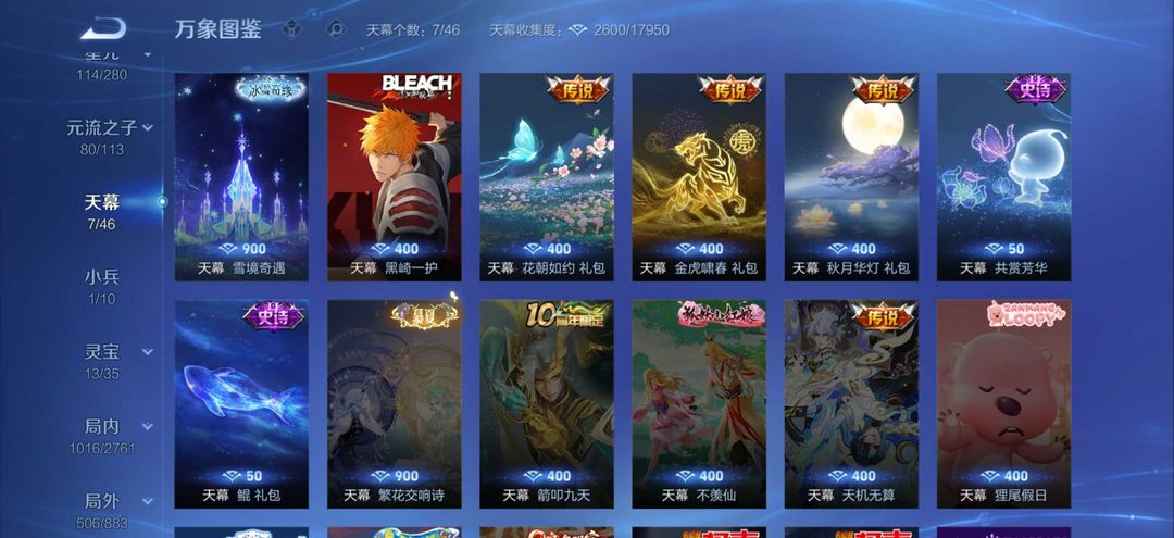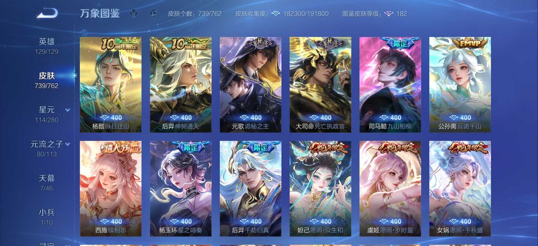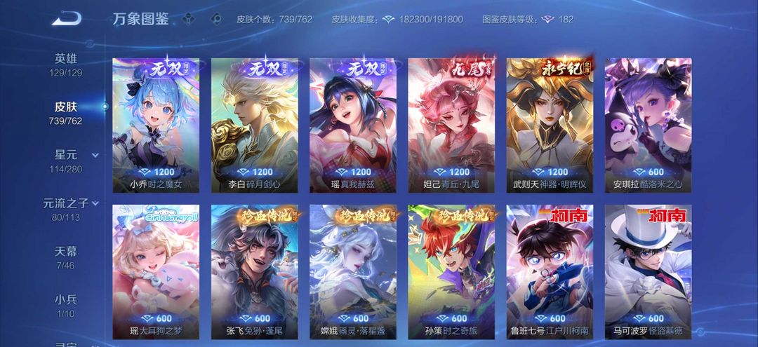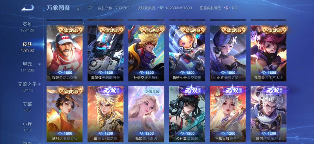 无双贵十739皮肤❤️7天幕1小兵❤️18典藏❤️129传说❤️满珍品无双❤️十无双七珍品传说