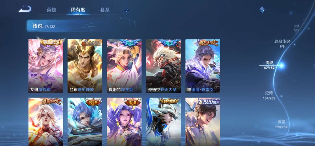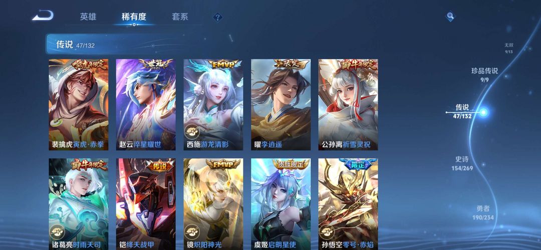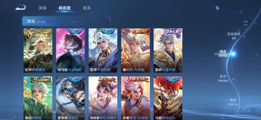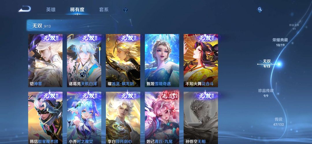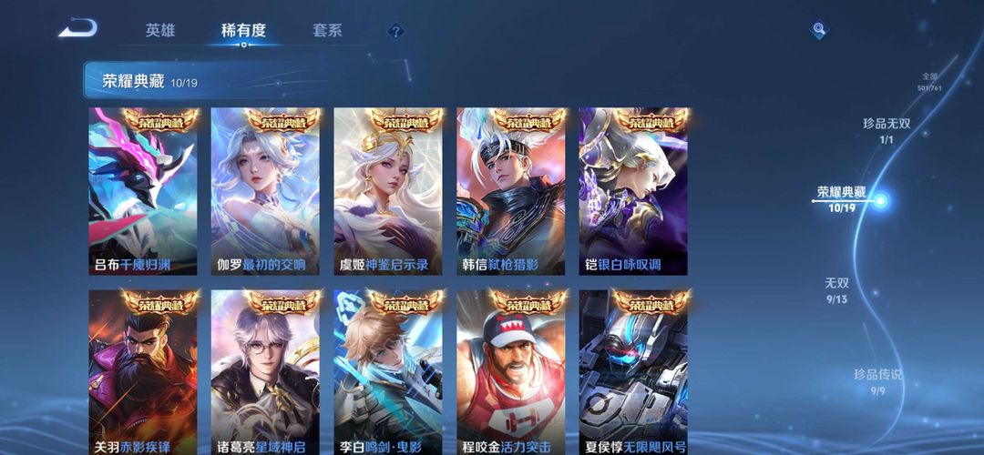 无双贵10,典藏10,无双9,珍品传说9,珍品无双1