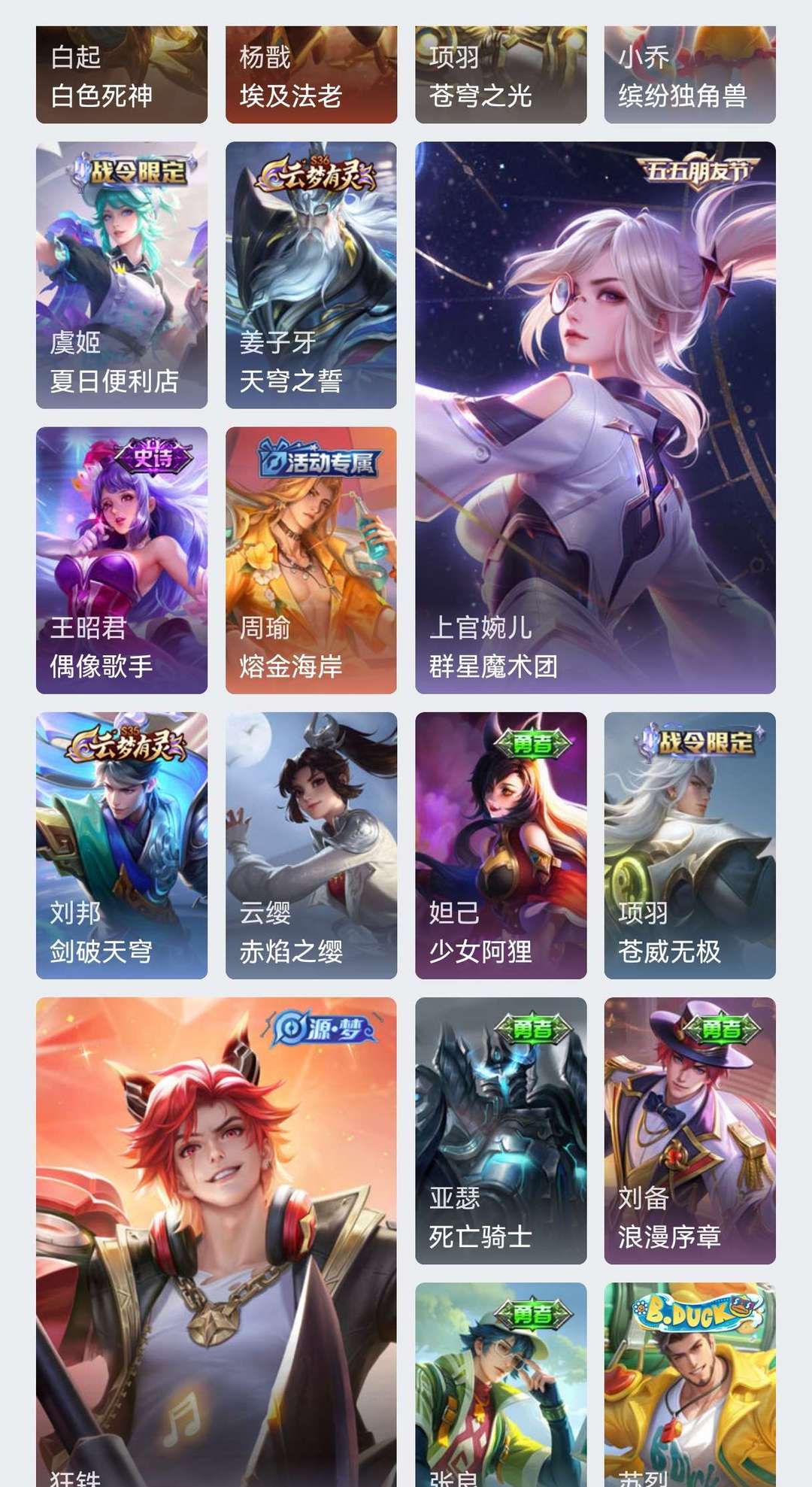 至尊宝,飞衡,婉儿群星魔术团,暃埋骨钱,弈星炽弈燎原,貂蝉金色仲夏夜