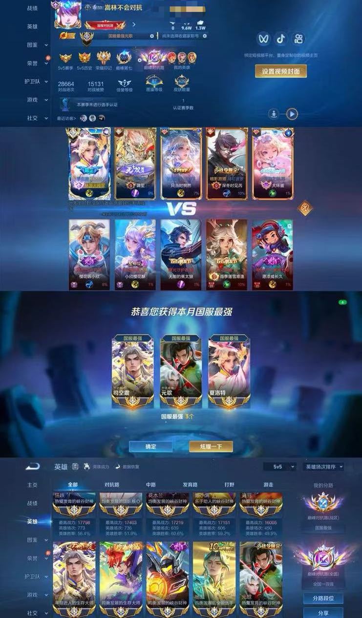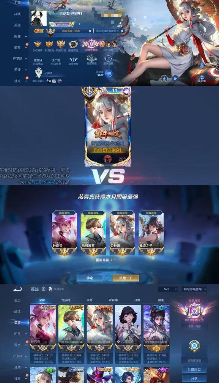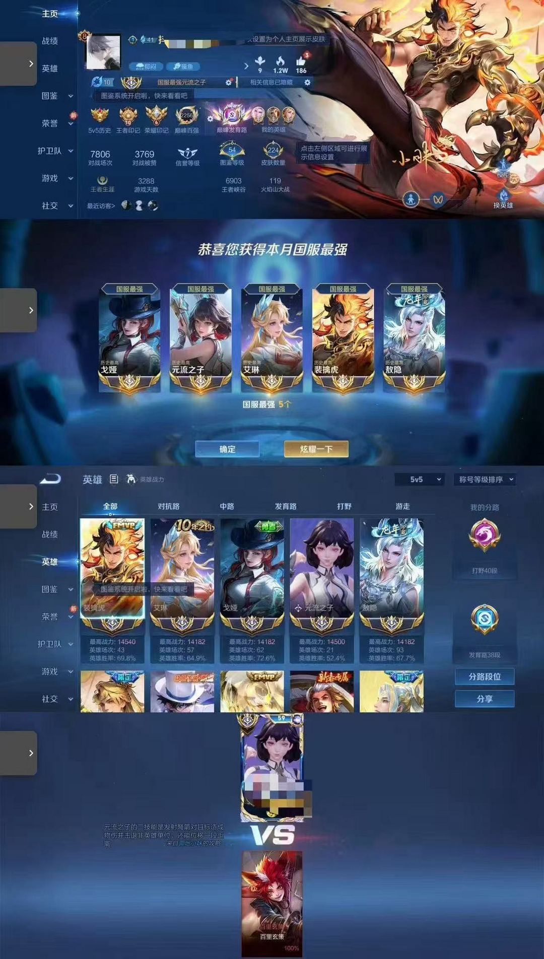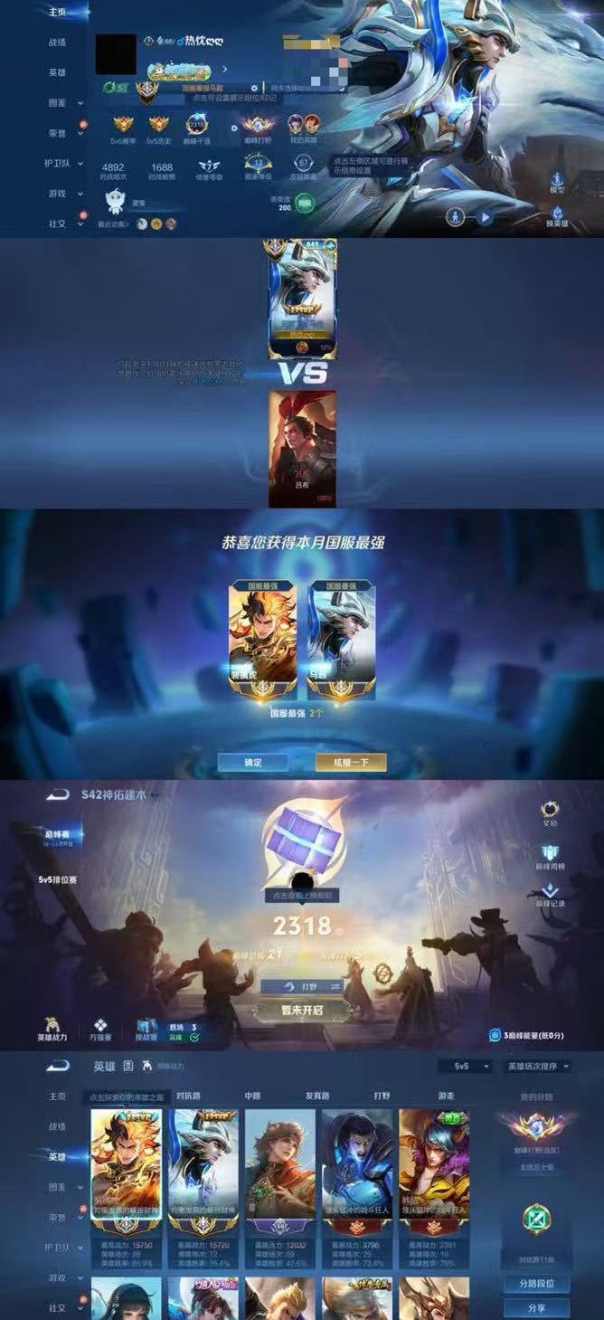 上号➕zzztz5,,二月在榜国服镜澜裴擒虎 巅峰前十国服猴子香香阿离马可老虎马超木兰120段