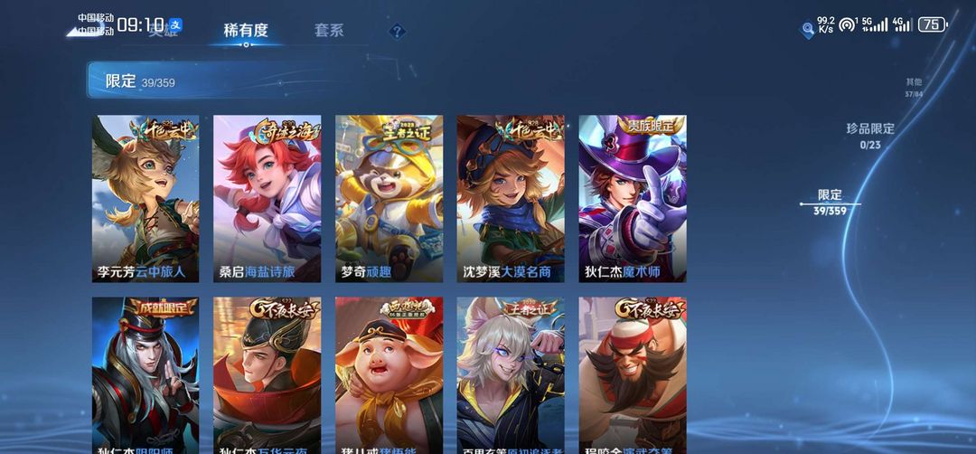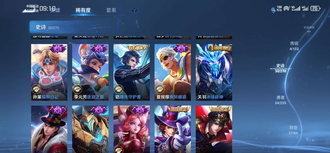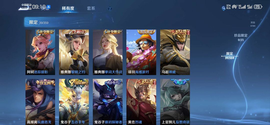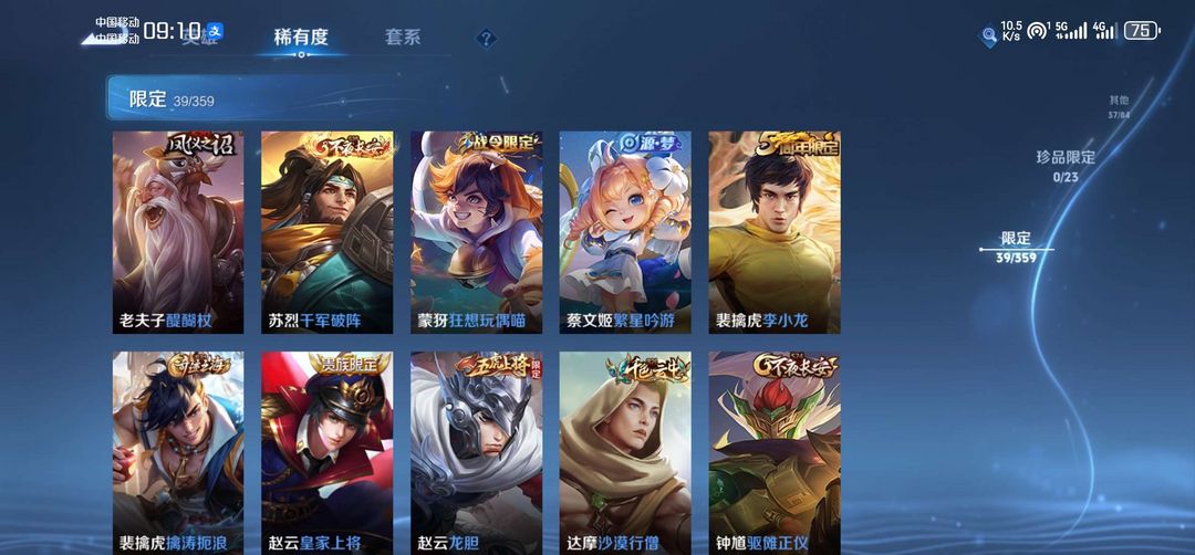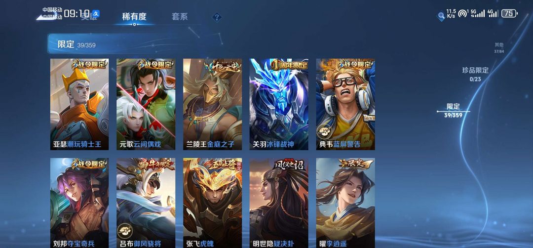 可排位125皮39限定+打野射手区标+万战娜可+五虎上将冰封战神李小龙炽阳神光音你闪耀诗剑行李逍遥