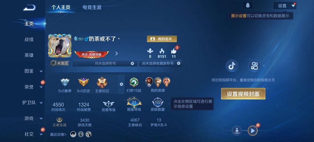 游戏区服:王者荣耀-QQ安卓-QQ账号 -手Q388区-霸者无疆
