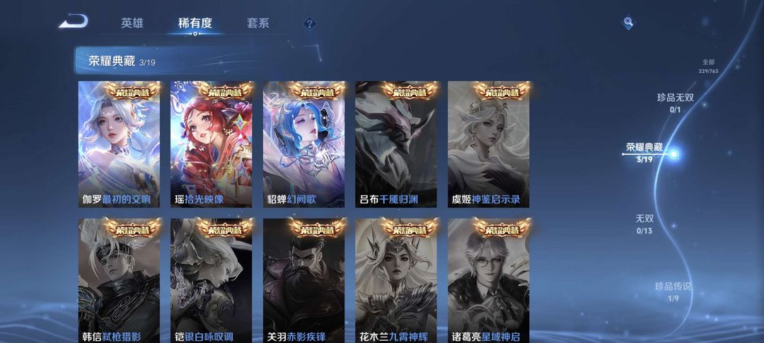 装备描述:不可过分说脏话,伽罗_最初的交响 ,瑶_时光映像,貂蝉_幻阙歌,嫦娥_器灵_落星盏,,妲己 虞姬 蔡文姬蛇年限定