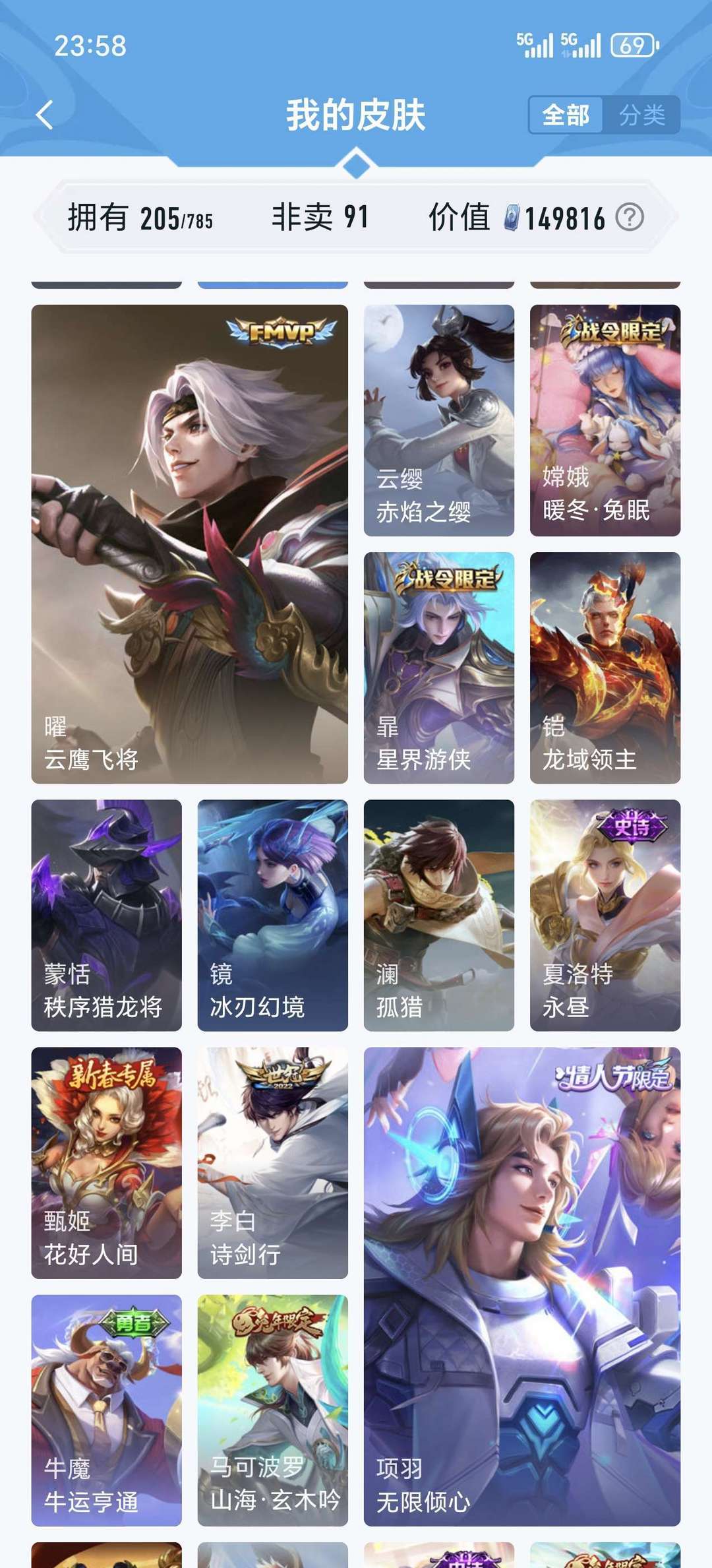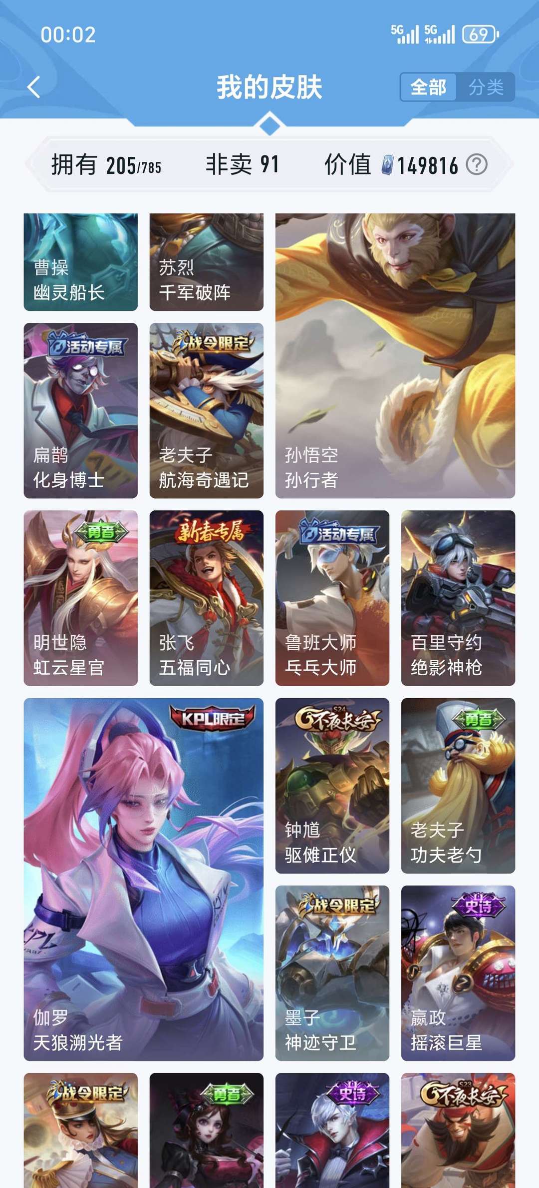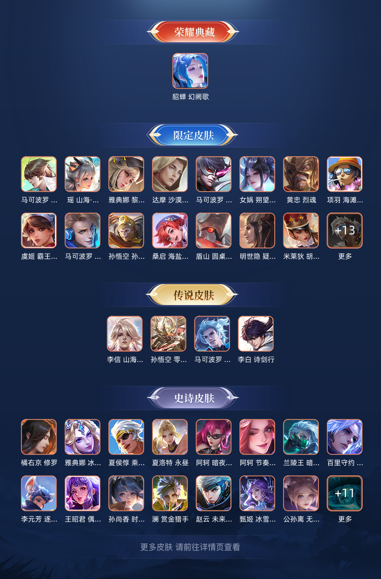 貂蝉典藏,猴子机甲星传说,嬴政金标,200+皮肤,超多限定