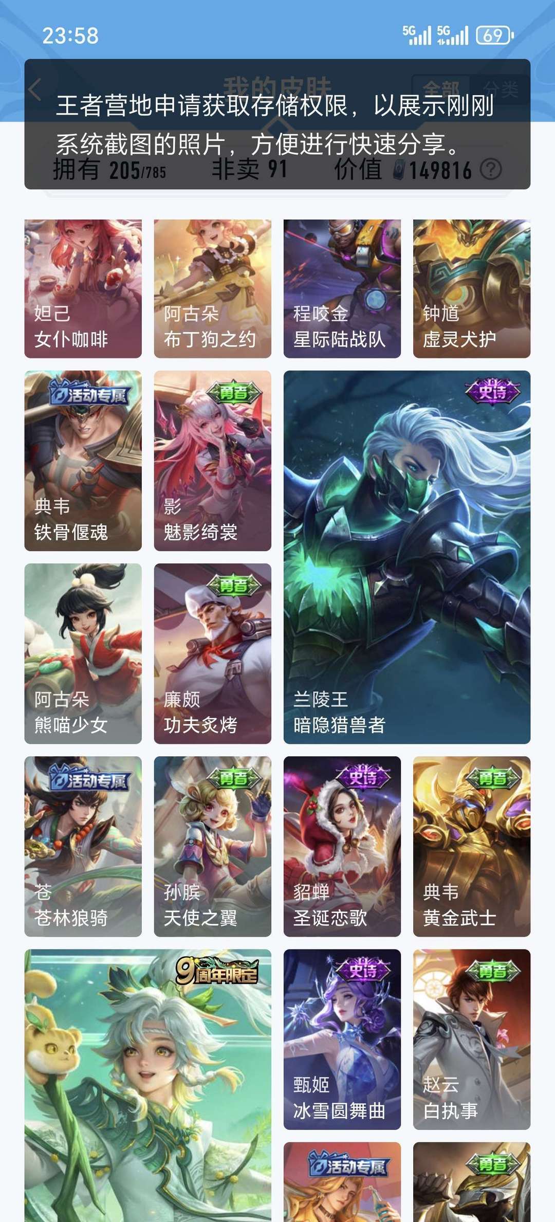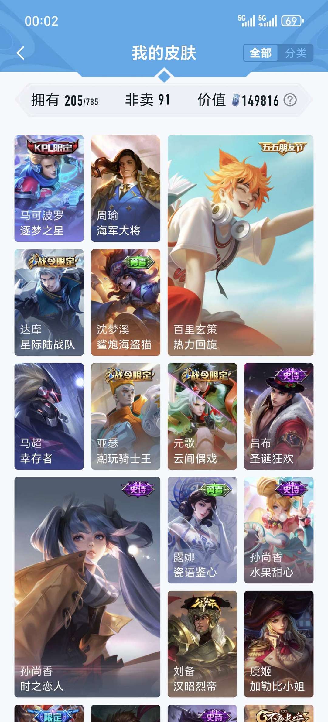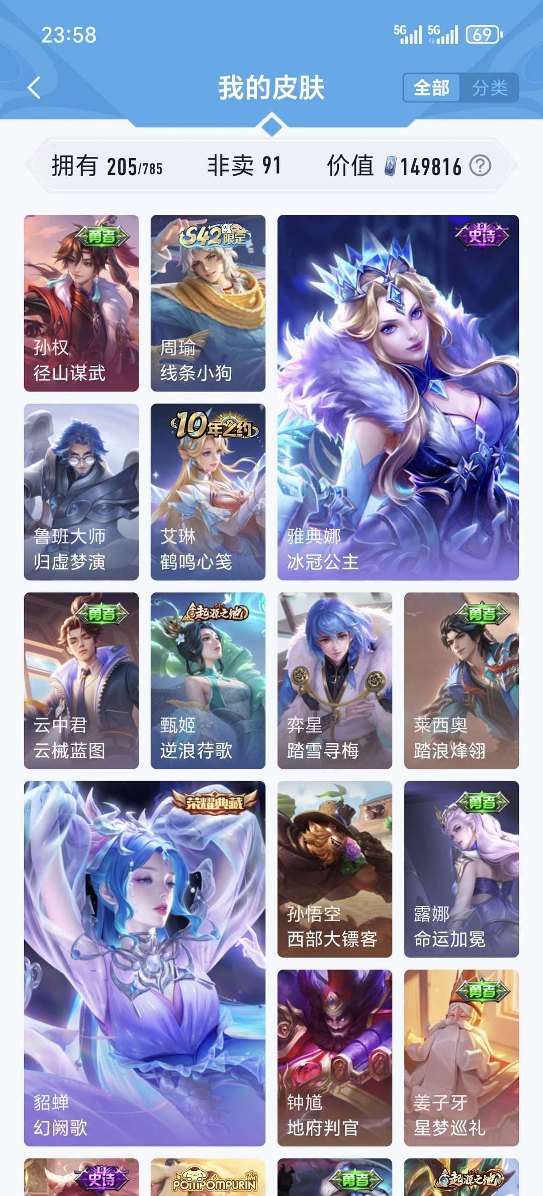 貂蝉典藏,猴子机甲星传说,嬴政金标,200+皮肤,超多限定