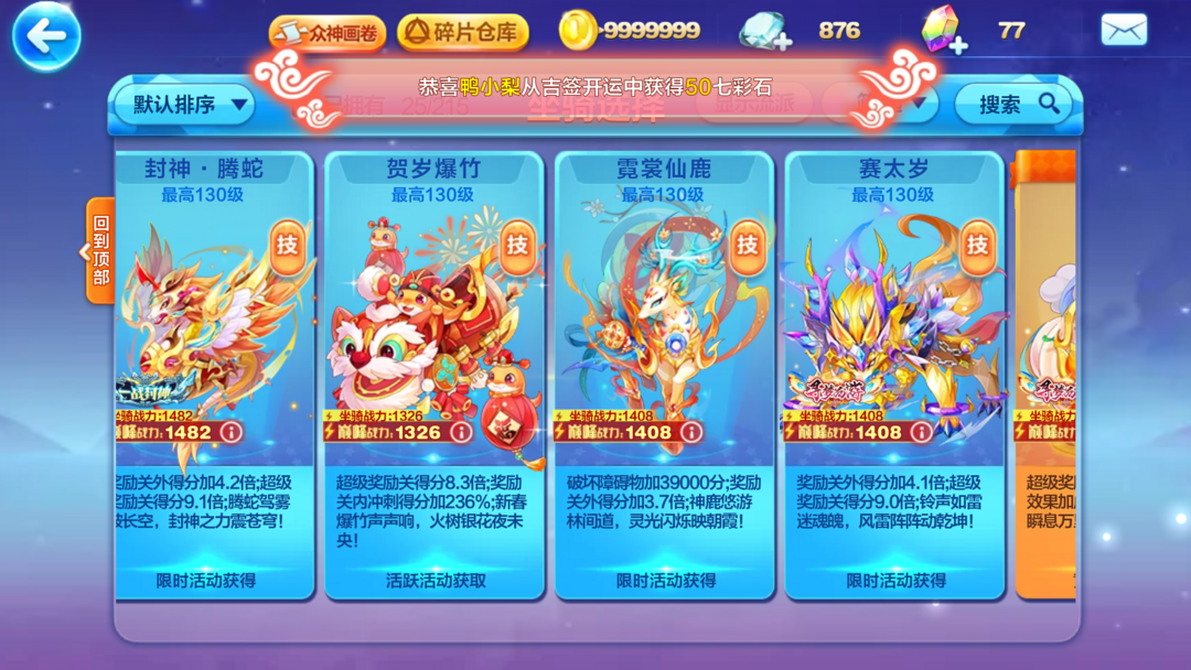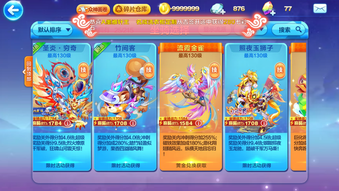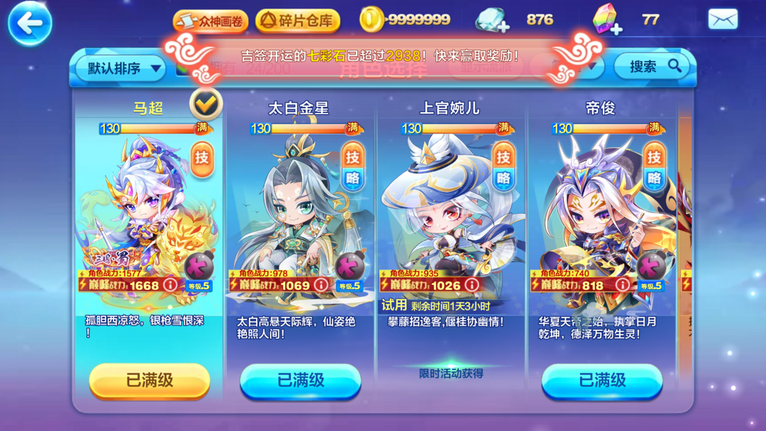 装备描述:角色,马超:1577,太白金星:978,帝俊:740 坐骑,……