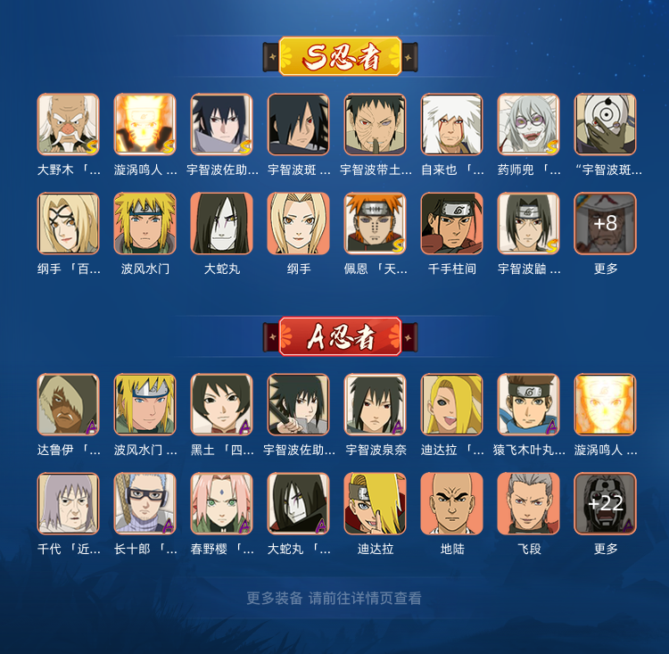 24s✨47a✨须佐卡卡西✨死门凯✨忍战带土✨秽土斑✨创立斑✨死三代✨白面具✨黄猿✨紫狗✨青年长门