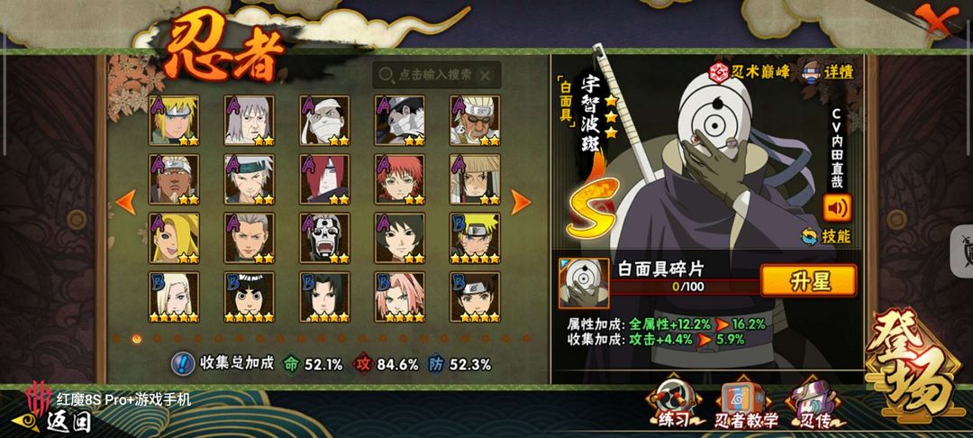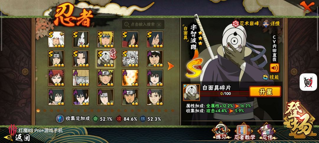 9s,25a,侠影佐助,漂泊再不斩,解斑,新春止水,秽土再不斩,点券c若干。